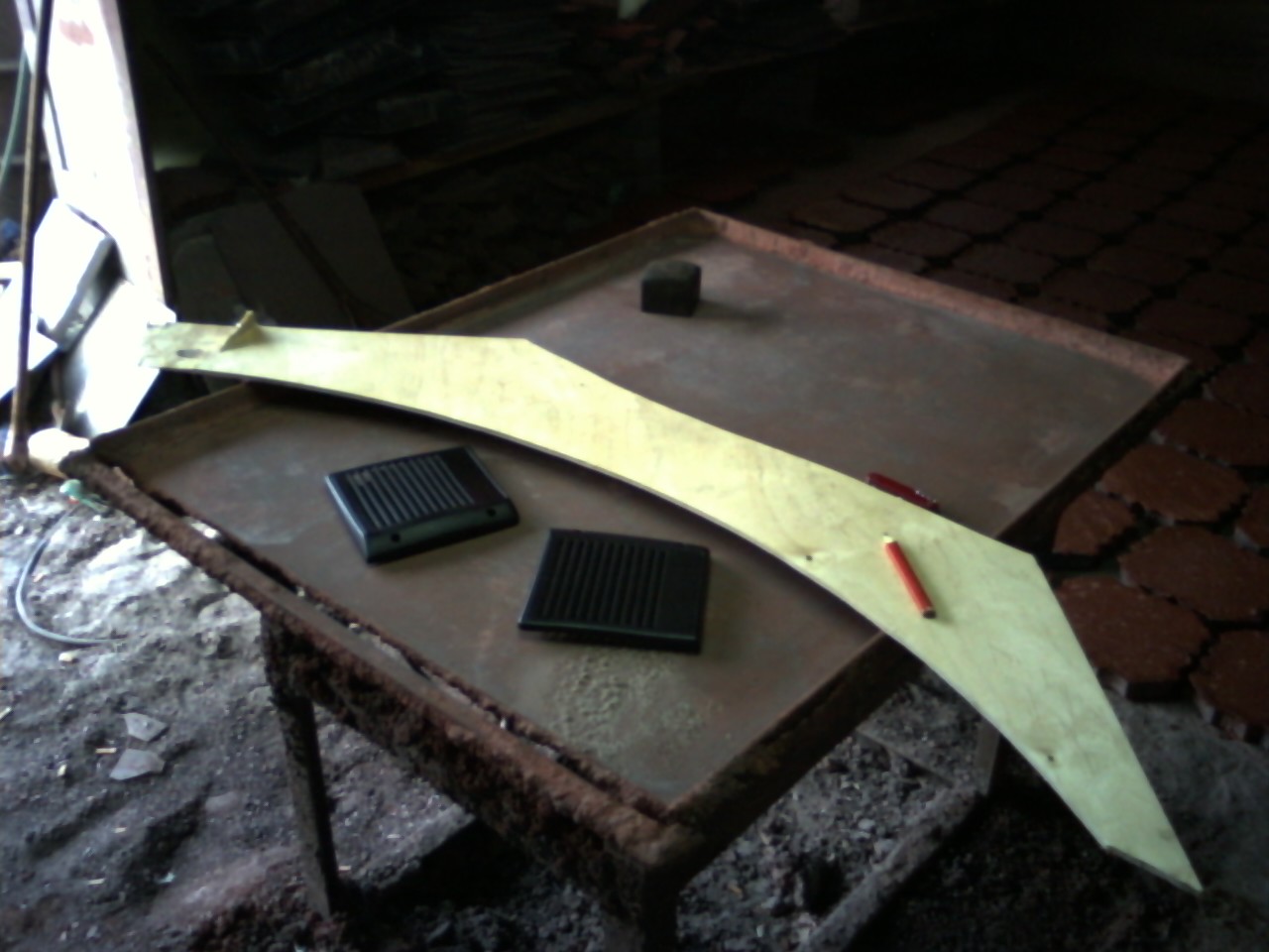 podłoże zostało wykonane z czerwonego materiału i kawałka płyty zwanej sklejka 5-6 mm.