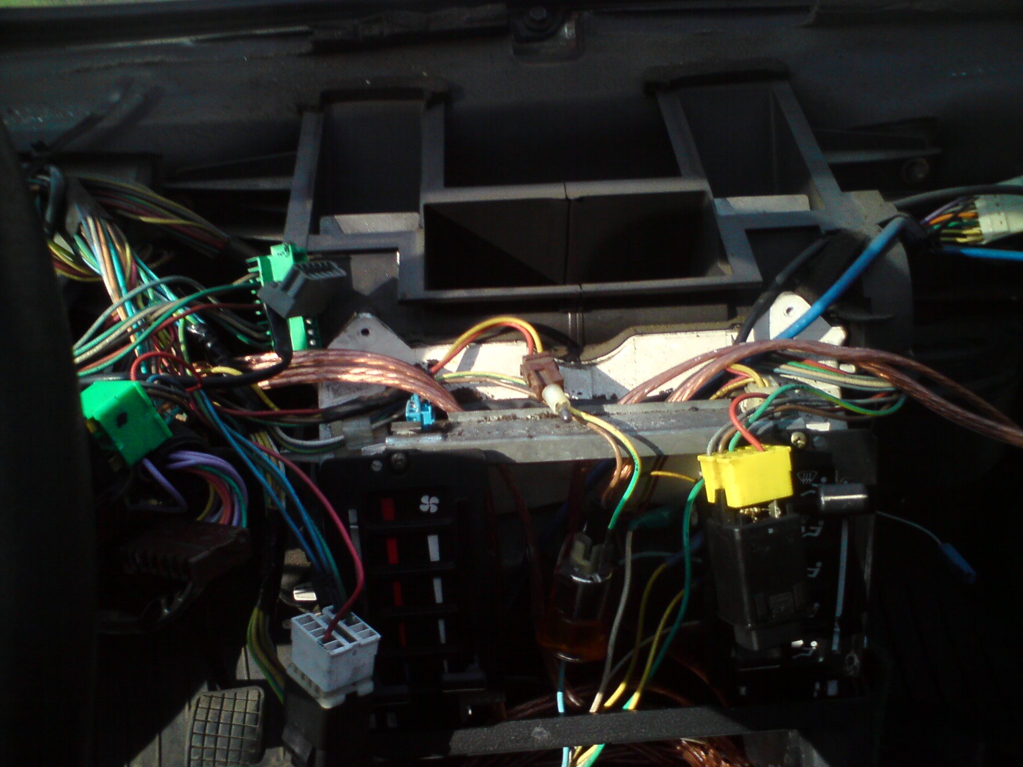 w między czasie doszły kable głośnikowe(grube miedziane na zdjęciach z pod deski rozdzielczej) przy okazji których rozebrało się tył wnętrza i odkryłem rozerwana pompkę tylnego spryskiwacza, głośniki odziedziczyłem z poprzedniego auta rodziców: