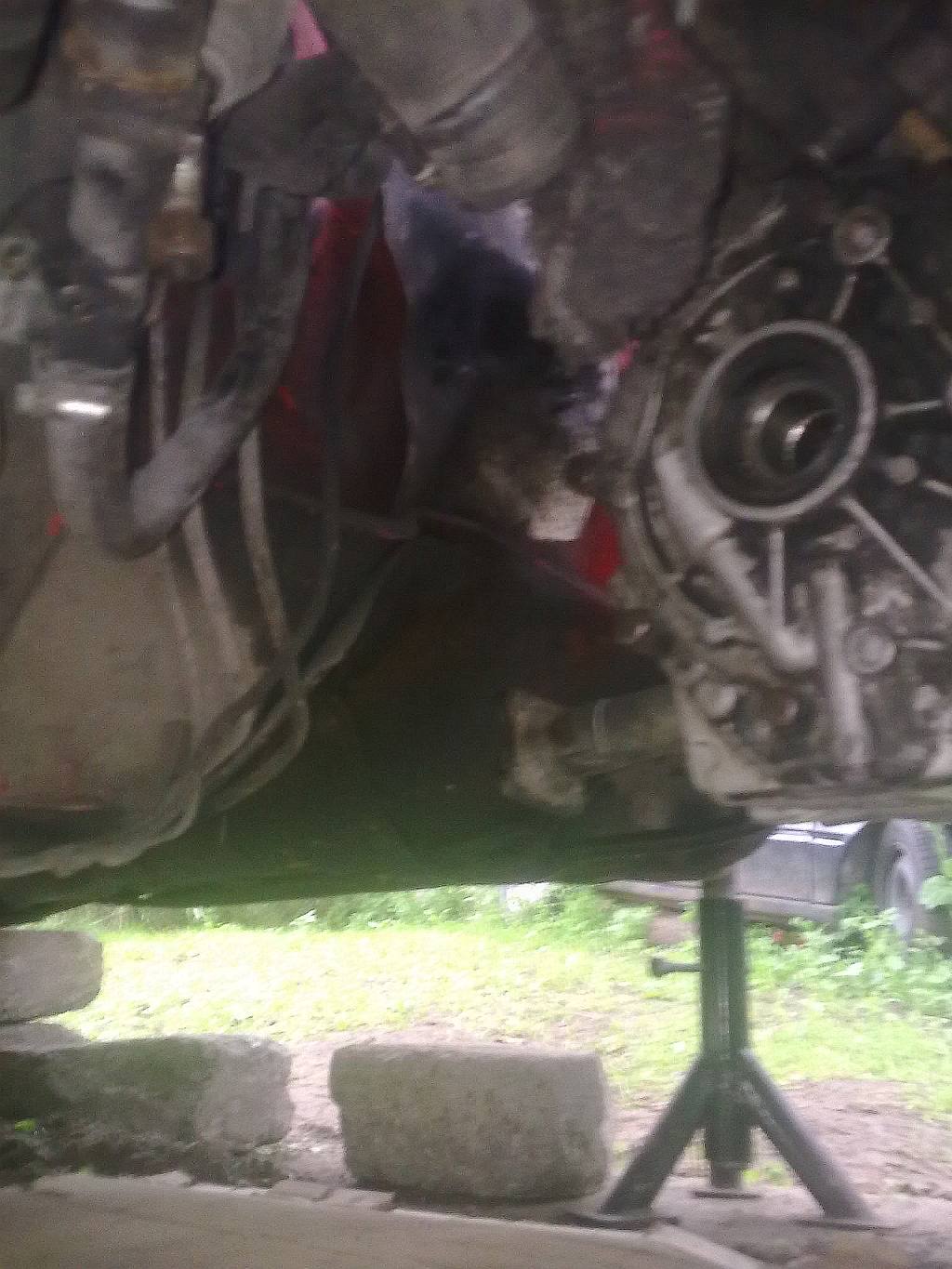 Na koniec widok spod silnika w tyl auta. Chyba nie bedzie tak zle z montazem walu napedowego