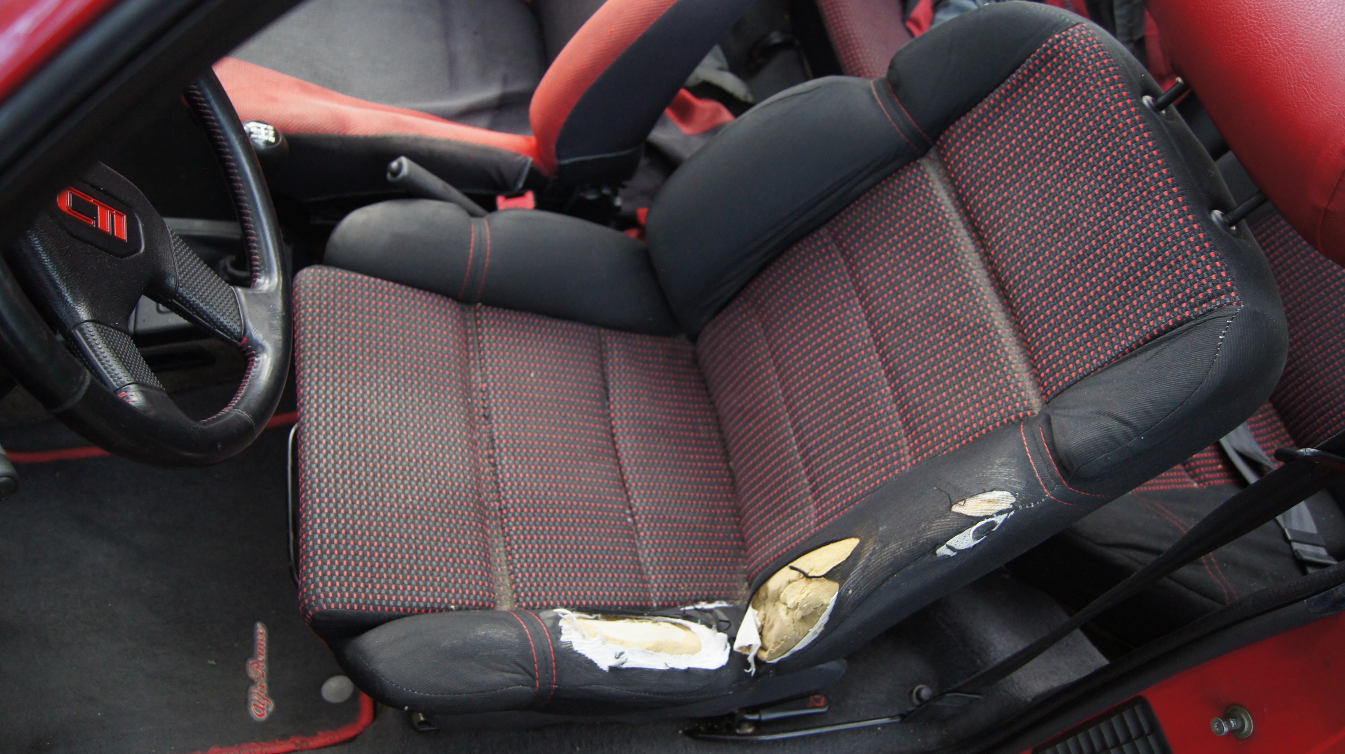 Zamontowałem nowe fotele. Wcześniej zostały wyprane, ale nie przyniosło to zamierzonego efektu. Trudno. Zawiozłem je tez do tapicera aby zrobił "zaprawki", ale ten stwierdził że to nie ma sensu, bo jeśli wbiłby w nie igłę, to materiał by się spruł. Polecił by jeździć aż się całkiem nie skończą i obić całość na nowo. Tak zrobię. Może i nie są jakieś tam bombowe, ale przynajmniej są sztywne!