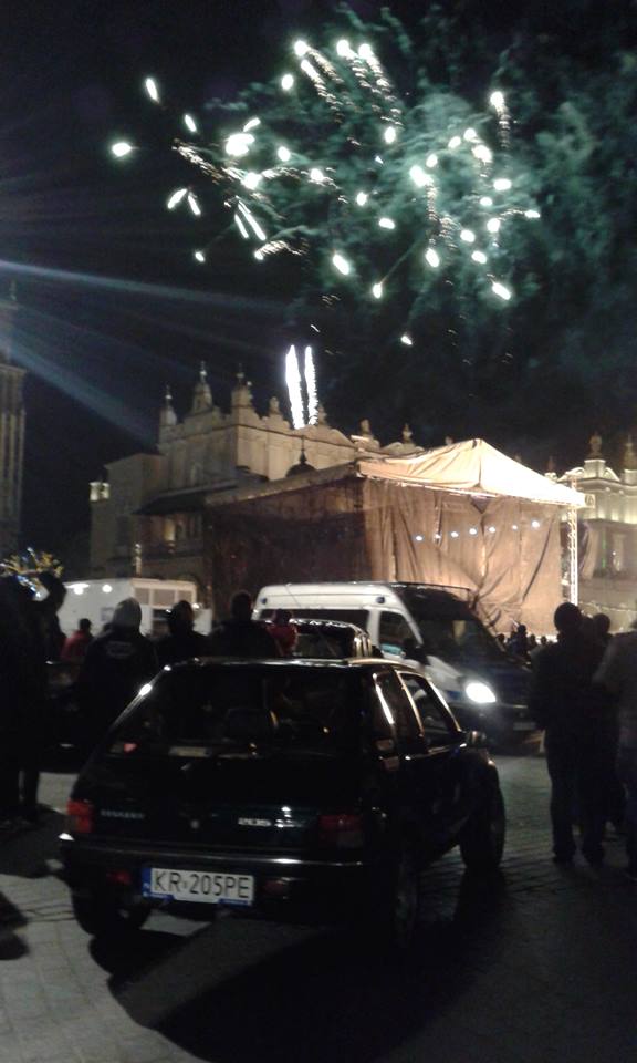 Razem z Krakowskimi Klasykami Nocą mieliśmy pozwolenie na wjazd na Rynek. Przy ustawianiu aut na potrzeby TV zaparkowałem sobie z boczku, ale okazało się, że koło mnie stanął Willys i jakiś stary motocykl, które ściągnęły uwagę reżysera i tak oto Gentry miał swoje 5 minut na antenie. Ale że on już obyty na salonach i doświadczony w byciu VIP-em, to doskonale dał sobie radę