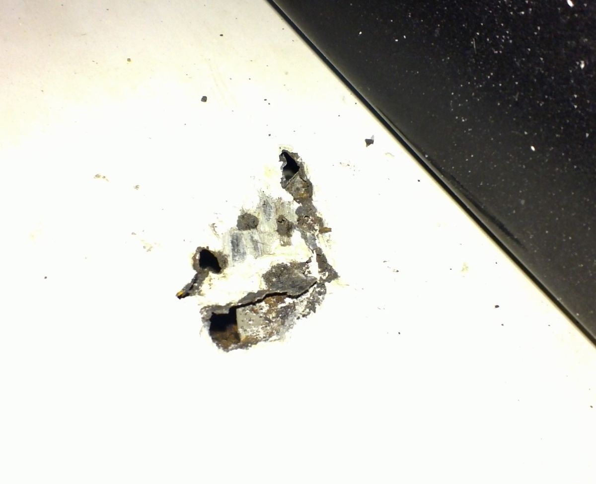 Na dachu jakiś czas temu wyszły takie parchy, więc postanowiłem sprawdzić co jest pod nimi, i..:) Ogólnie jeszcze nie wiem po co, na dużej powierzchni dachu, jest duża ilość szpachli. Chyba ją usune i zobaczę, co w trawie piszczy:)