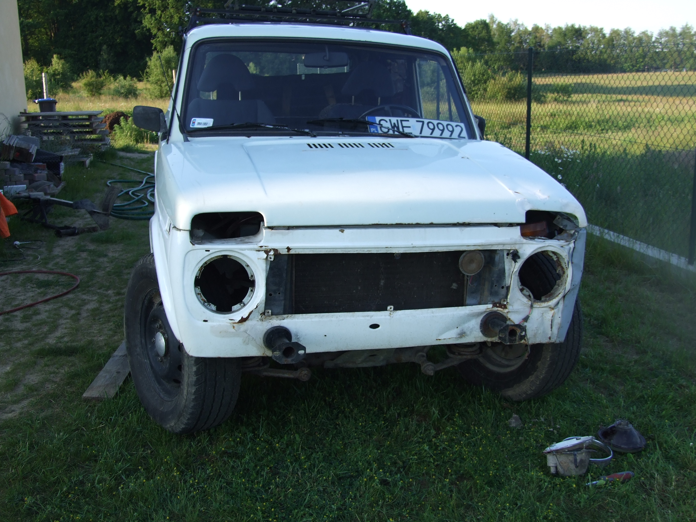 Rozbiórki Nivy czas zacząć, dziś pozbyła się przodu, i wyposażenia tylnej części pojazdu.
