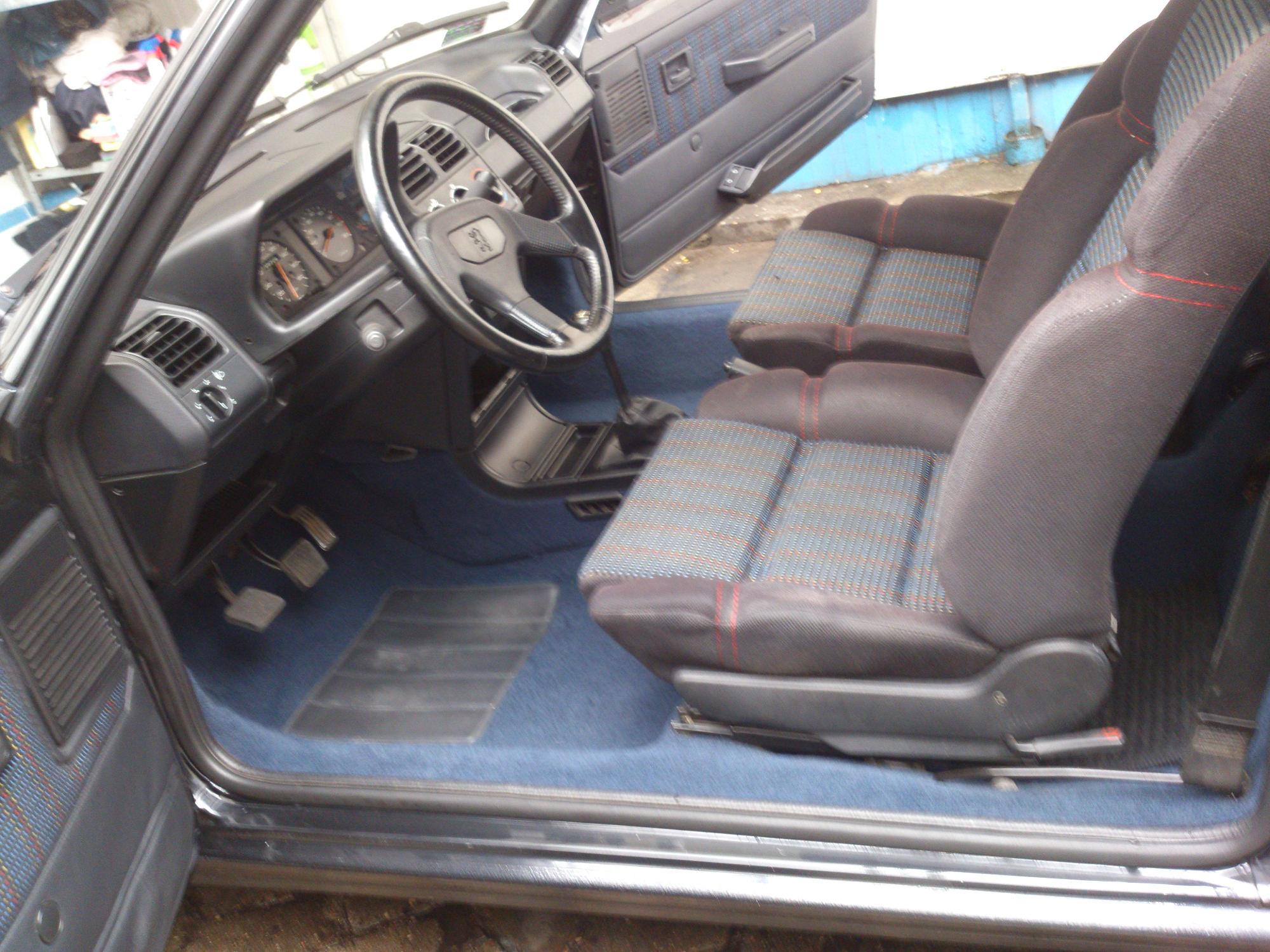 Sorki,że tak późno. Zgodnie z prośbą Józka fotka wnętrza. Nieskromnie uważam,że z czarnym lakierem granatowa wykładzina plus tapicerka właśnie taka jak jest idealnie się komponują. Swoją drogą pytanie skąd wiedziałeś na podstawie zdjęć auta zamieszczonych na tablicy że ma takie wnętrze? Niewiele było tam widaćjozek pisze:Gratsy. Wrzuć koniecznie zdjęcia wnętrza. To wersji 205 z jednymi z najładniejszych foteli.
