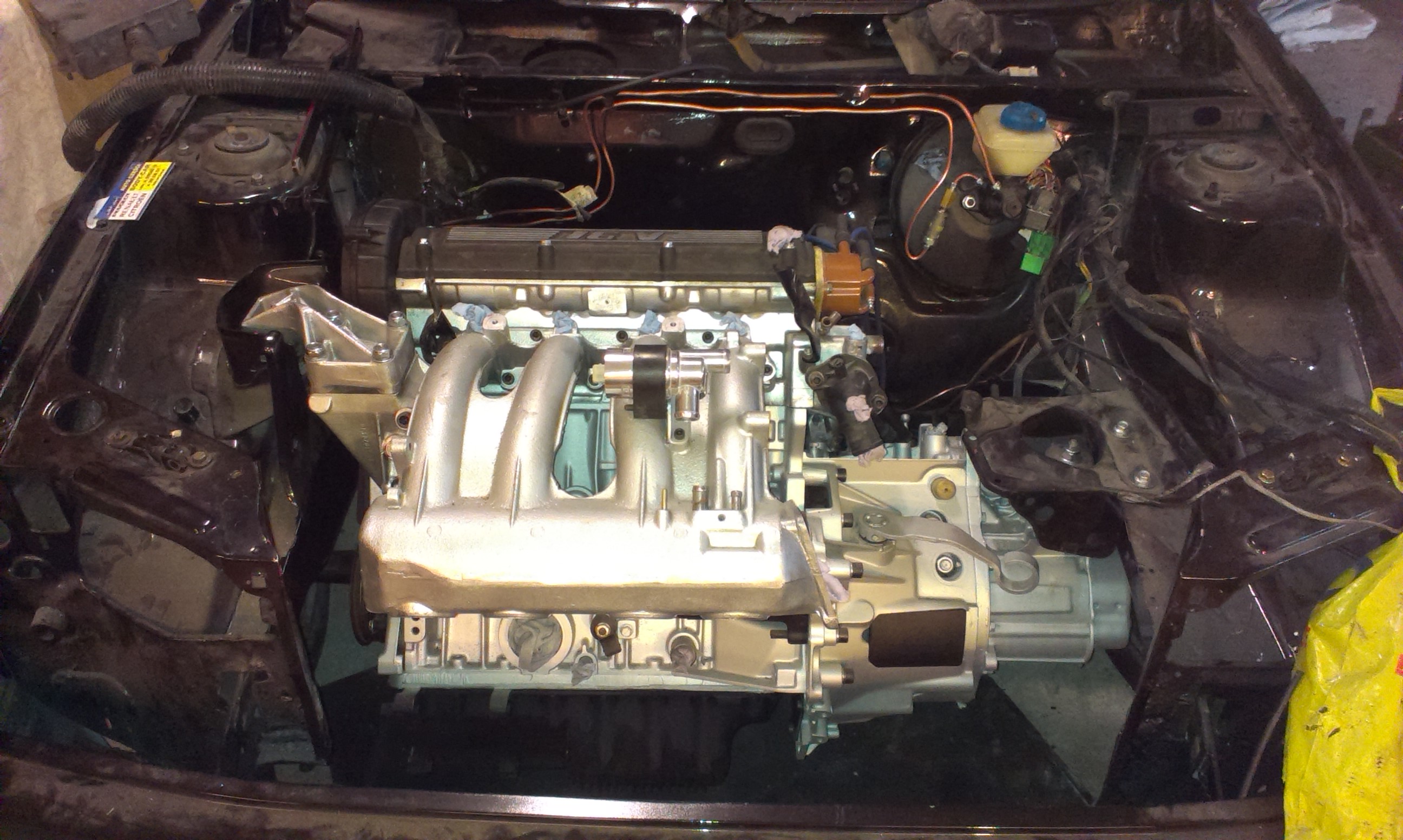 Prace ruszyły silnik na nowych poduszkach pod maska, nowe przewody paliwa i hamulców na miejscu dziś będę składać silnik do kupy