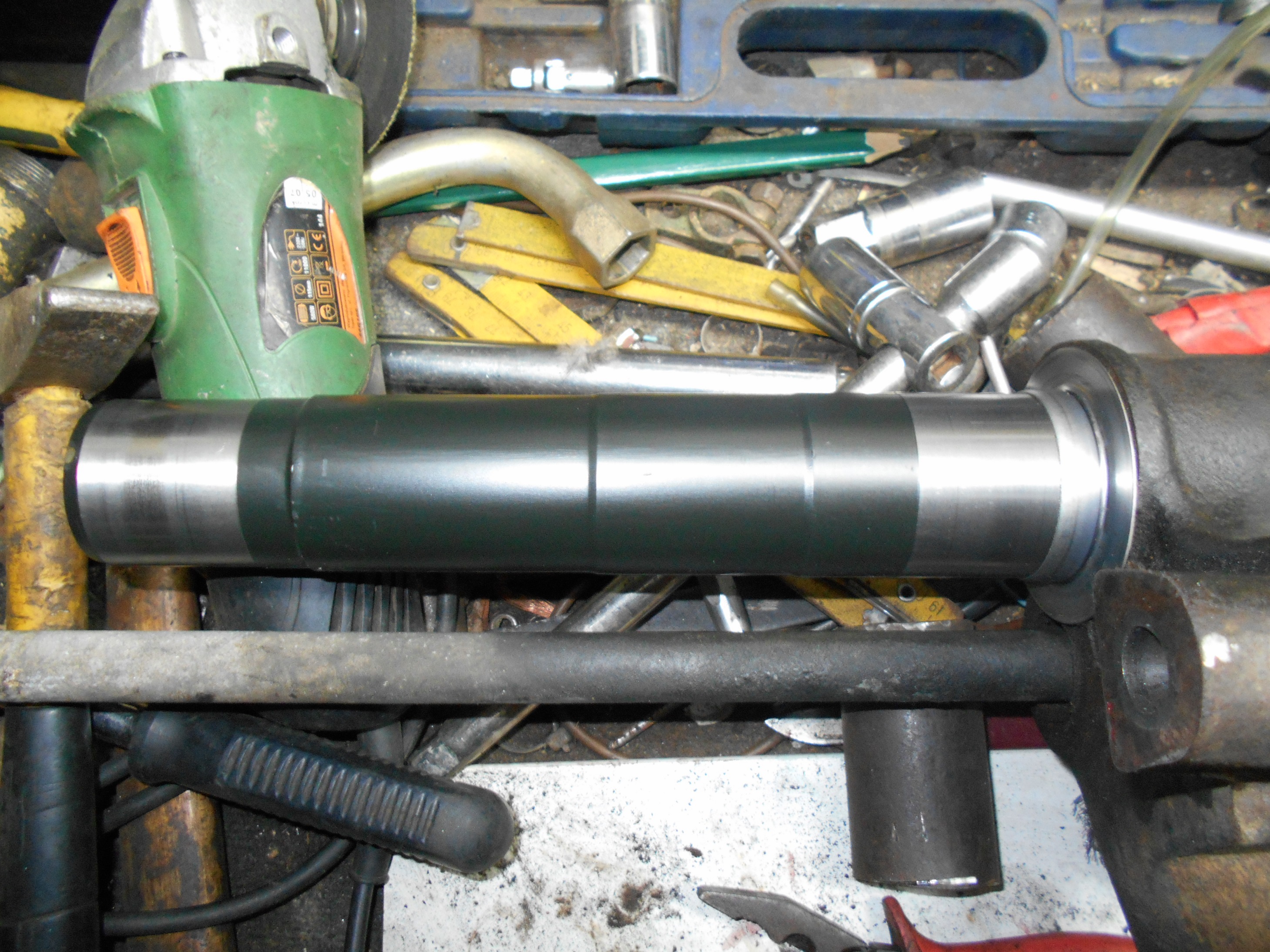 Prace powoli ale postępują. Na budzie już położone 2 warstwy reaktywnego, belka za sprawą Manwe i Bzyq'a rozłożona. Poszło dość łatwo. 20 kg młot samą wagą rozbił belkę. Czopy prawie jak nowe, tylko lewy ma lekkie ślady łożyska. Jutro jedziemy dalej.