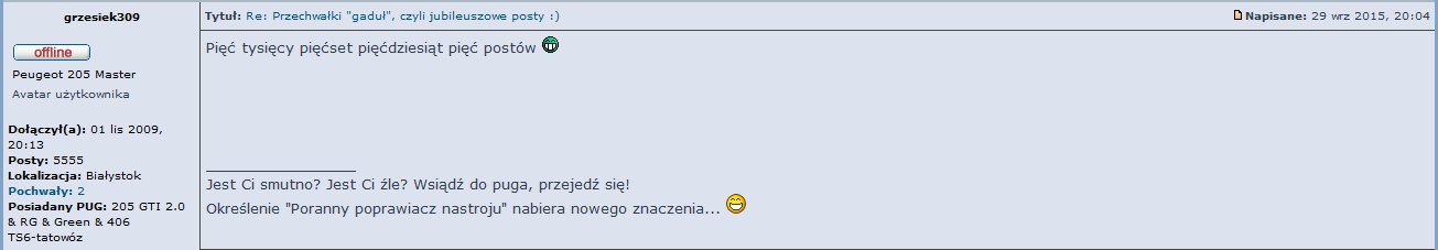 Re: Przechwałki "gaduł", czyli jubileuszowe posty :)