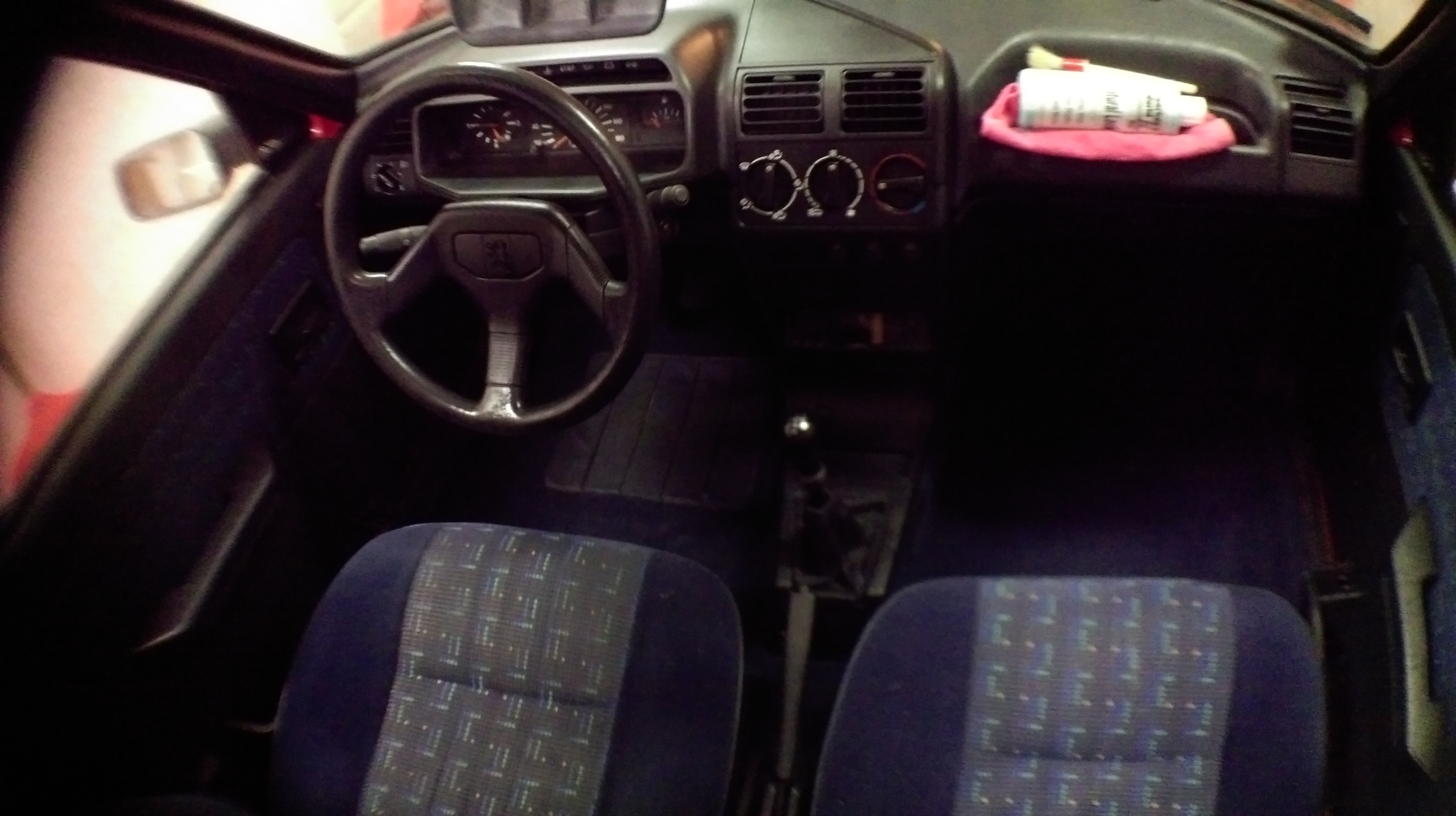 Kupiony był peugeotowski błotnik niebieski i polakierowany. Chodziłem wokół auta z 15min i nie znalazłem purchli czy korozji. Progi wyglądają bardzo ładnie i są chyba z fabryczną konserwacją. Podłoga,ile wzrokiem i pięścią sięgnąłem również dobrze rokuje.