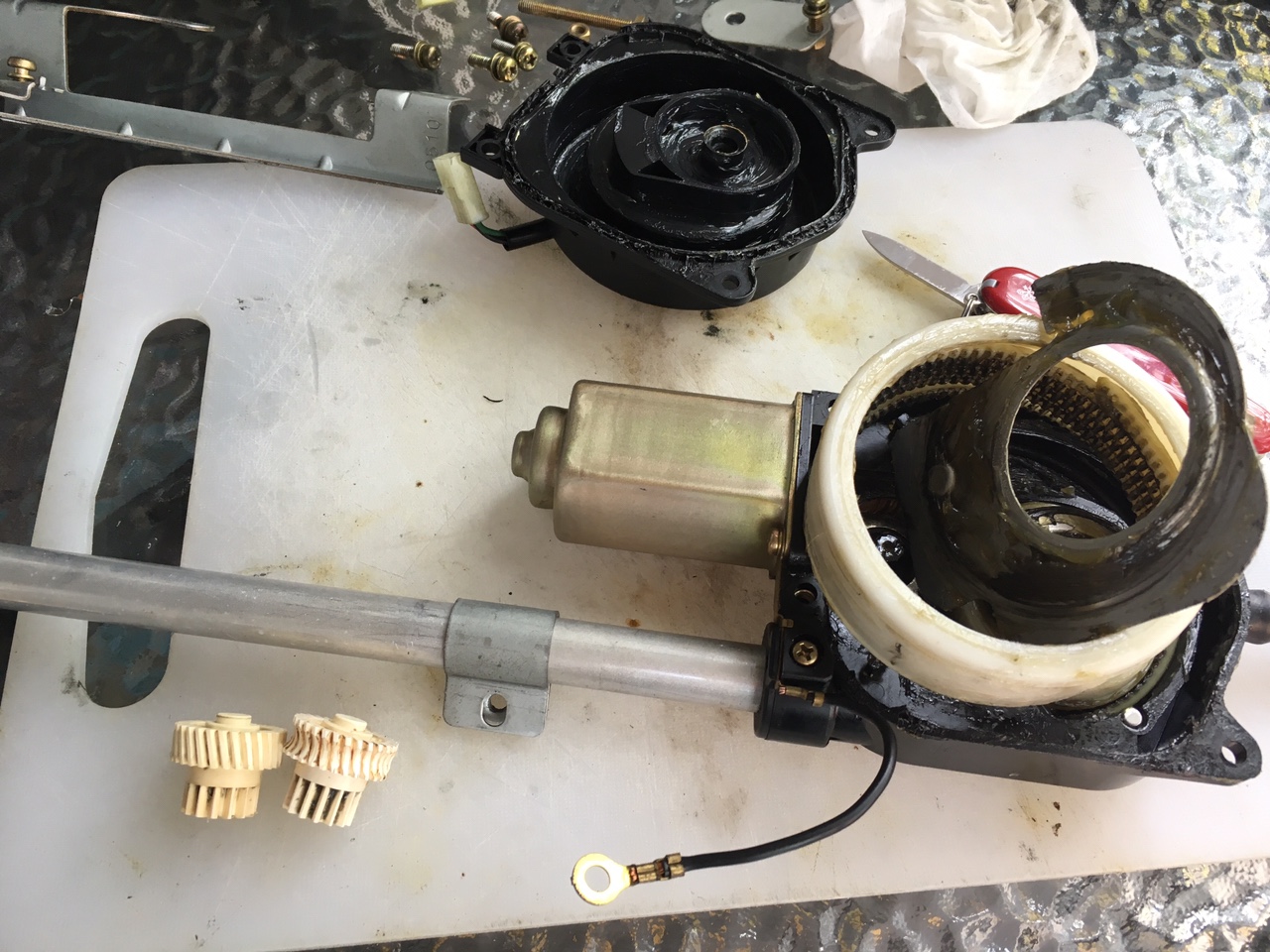 Wczoraj naprawiona została elektrycznie wysuwana antena. Po pół roku poszukiwań udało się zakupić nową, niewytartą zębatkę: