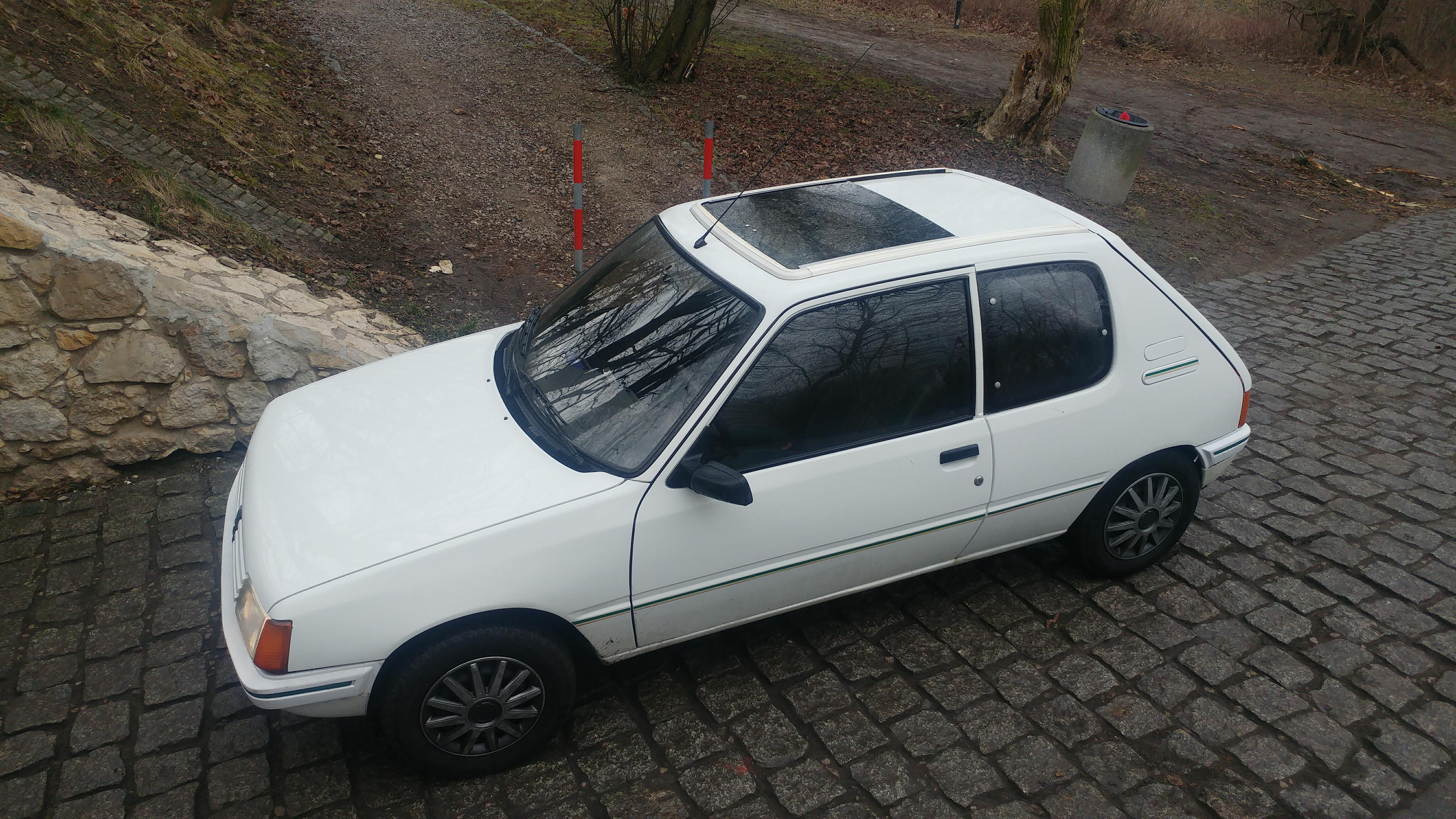 Blenda klapy podmieniona została na czarną, brakuje znaczka "Green". A emblematy "Peugeot" i "205" są paskudnie odnowione białą farbą.