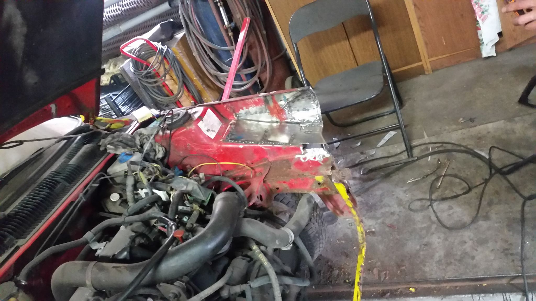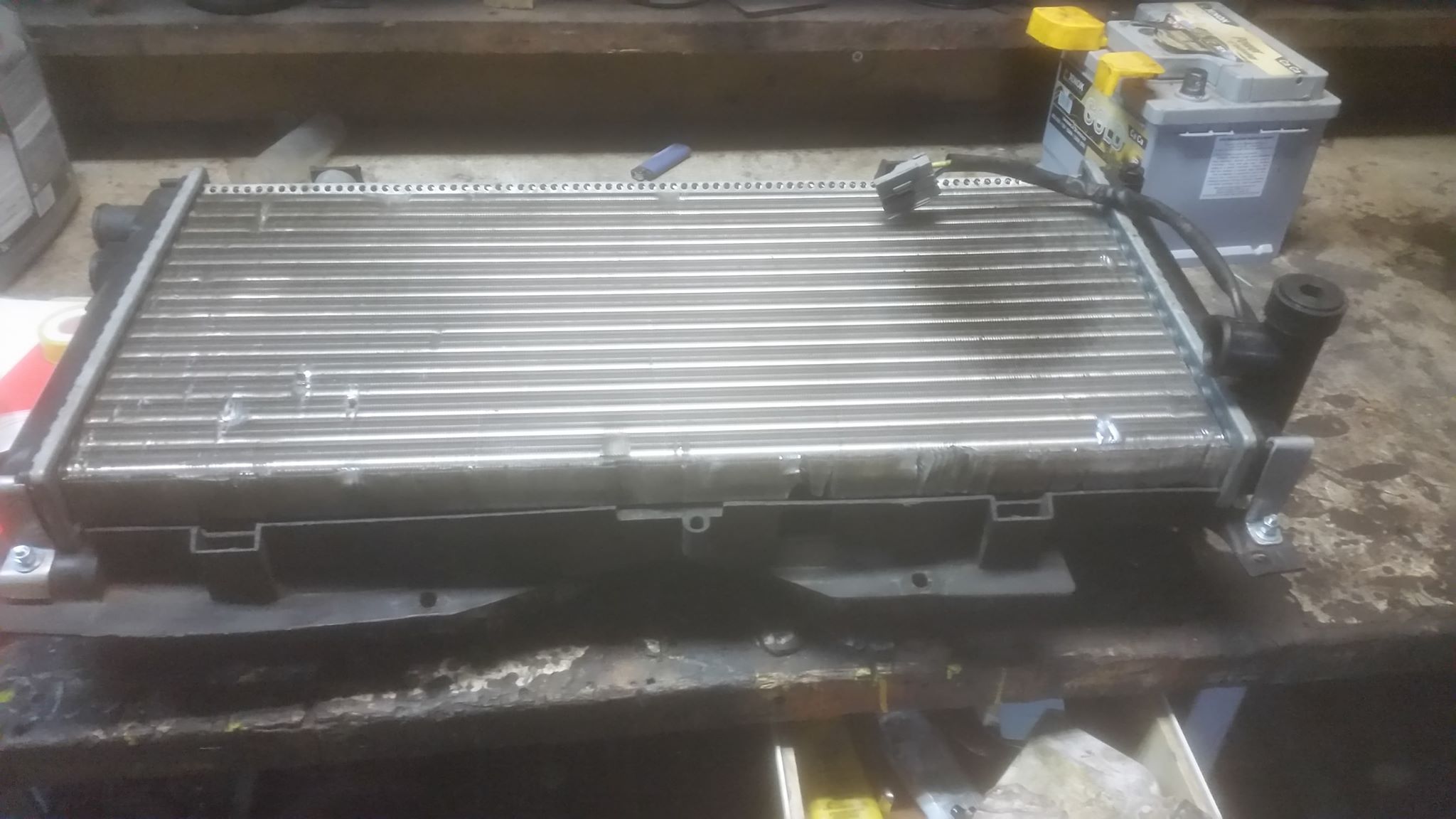 Szybki przegląd węży, wszystkie ok. Chłodnica. No cóż, stara była, olejem zachlapana. A w garażu secik gotowy do Kuca, na 2 wentylatory i chłodnicę z diesla.