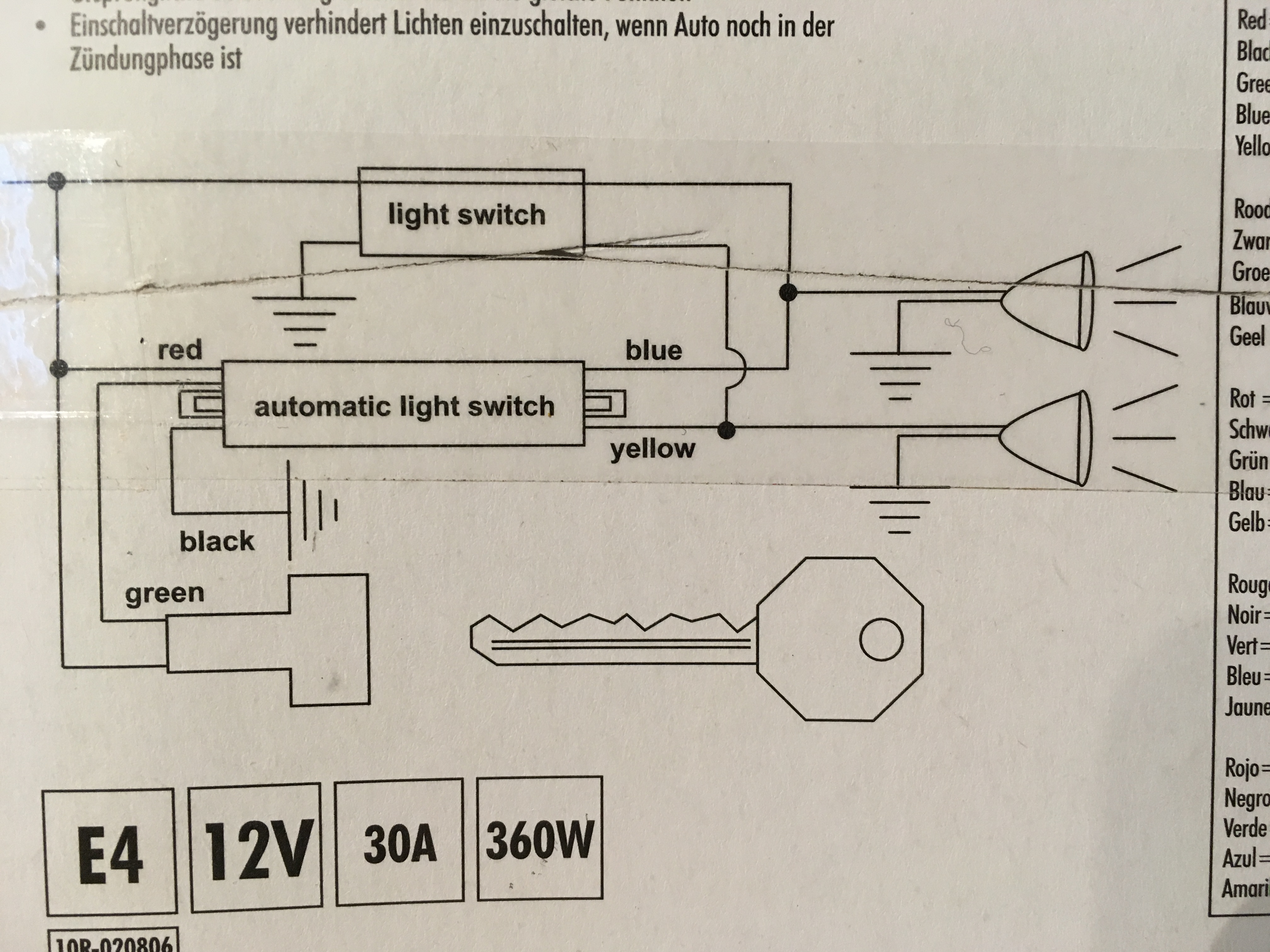- zielony to światła pozycyjne po przełaczniku - podłaczamy przewód wyjściowy z automatu świateł