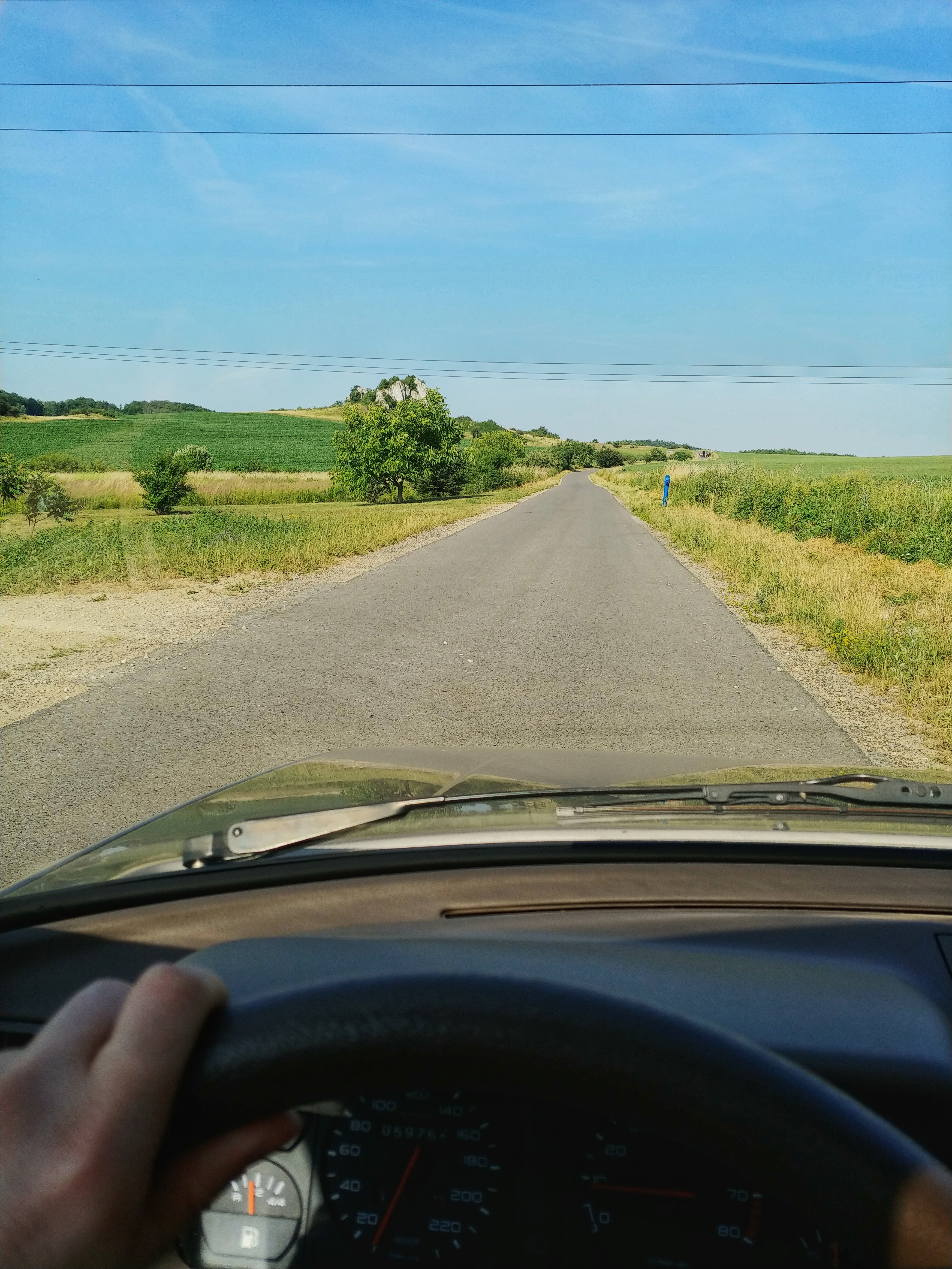 Z powodu panującego ogromnego upału wszystkie elementy mechaniczne szybciej się nagrzały, temperatura płyny chłodzącego i oleju wzrosły, więc można było nieco przyśpieszyć. Na szczęście układ chłodzenia dawał radę i silnik się nie przegrzewał. Ja owszem! Lubię ciepło, ale czułem się jak w krematorium... po minięciu 50 godzin dojechałem na miejsce... no prawie, bo jeszcze napawałem się bardzo ładną drogą dojazdową do stajenki "Biały Kamień".