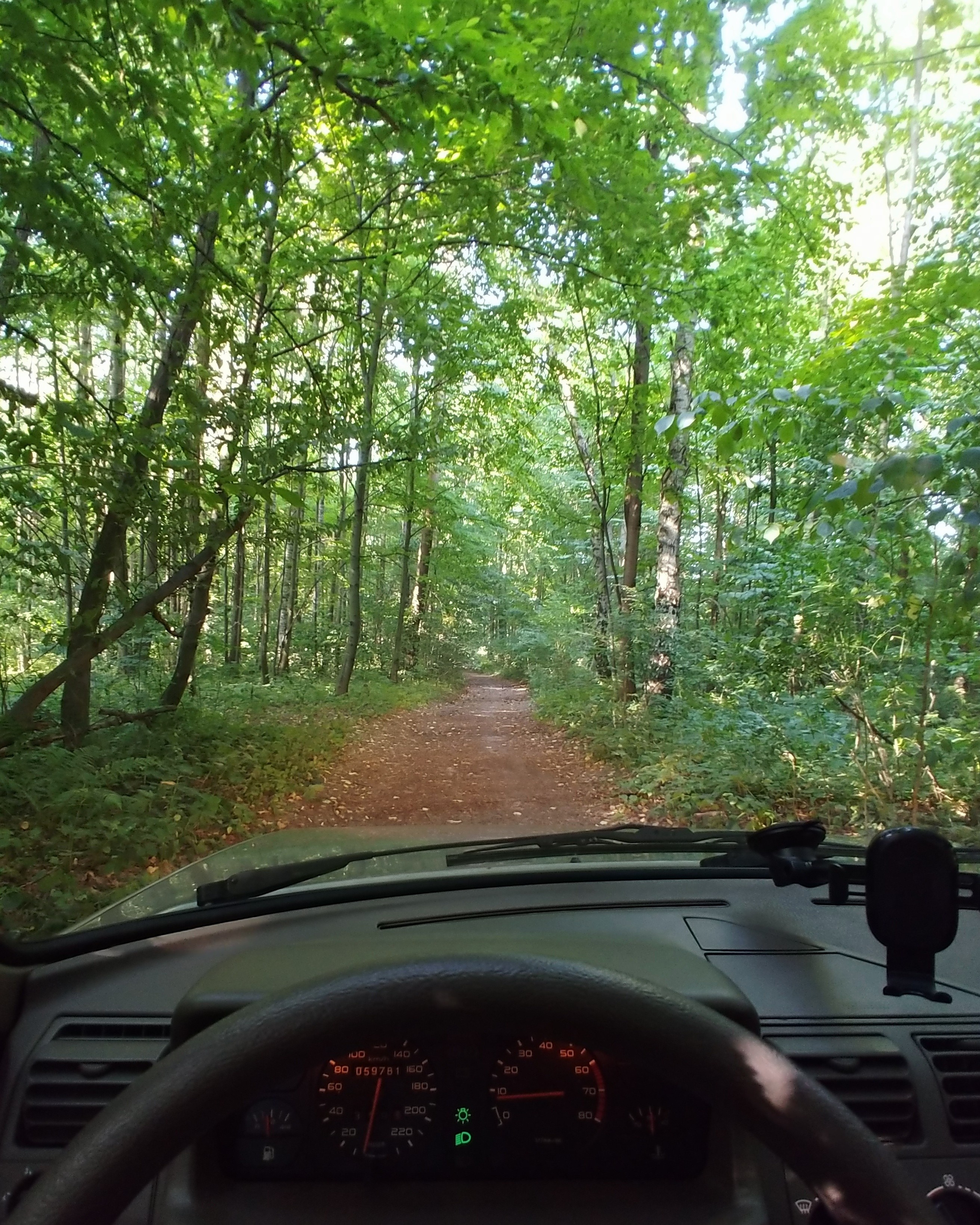Z powodu panującego ogromnego upału wszystkie elementy mechaniczne szybciej się nagrzały, temperatura płyny chłodzącego i oleju wzrosły, więc można było nieco przyśpieszyć. Na szczęście układ chłodzenia dawał radę i silnik się nie przegrzewał. Ja owszem! Lubię ciepło, ale czułem się jak w krematorium... po minięciu 50 godzin dojechałem na miejsce... no prawie, bo jeszcze napawałem się bardzo ładną drogą dojazdową do stajenki "Biały Kamień".