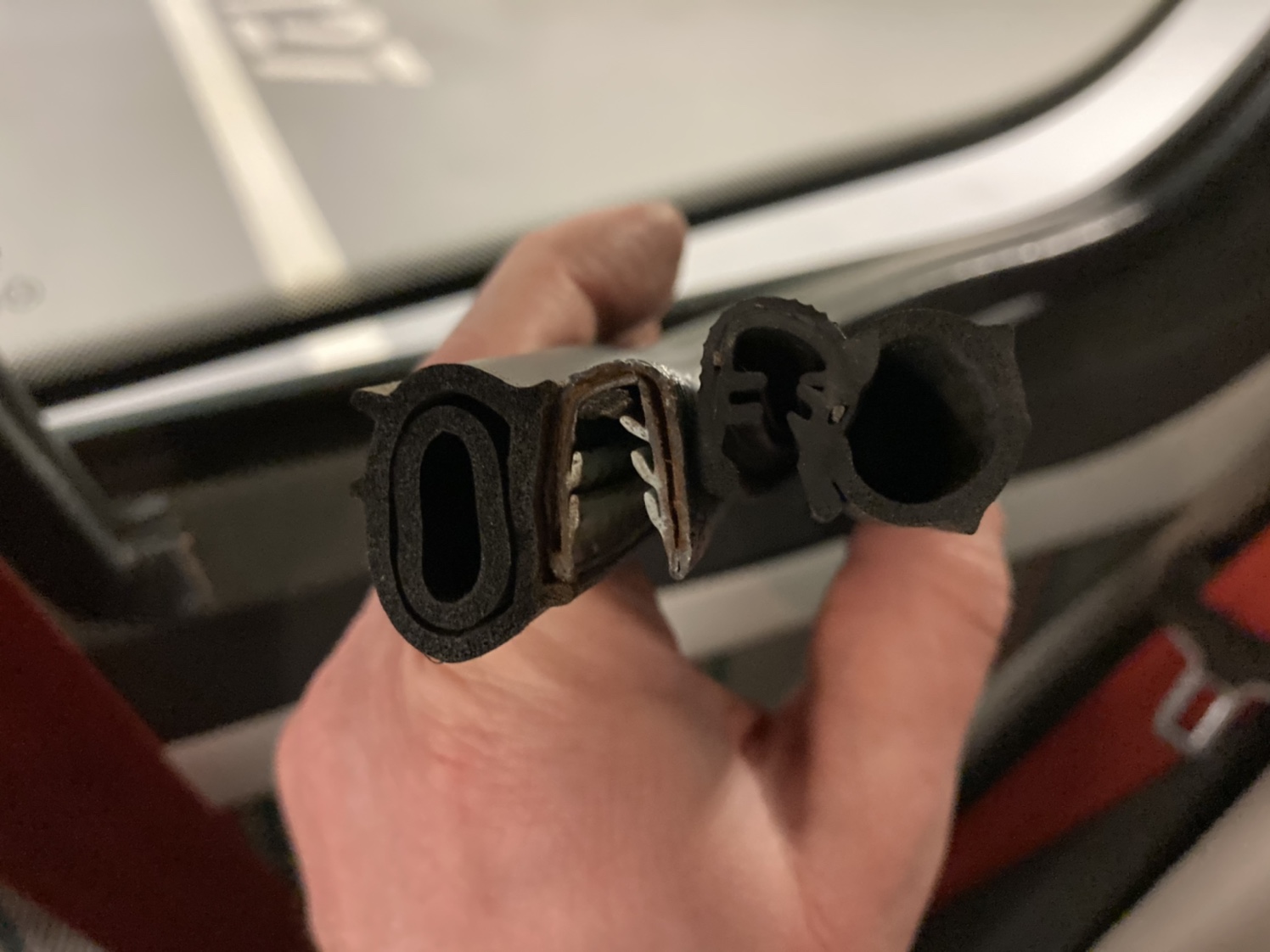 Próbę szczelności przeszła poprawnie. Teraz trzeba przetestować przy okazji większej ulewy lub myjni. A tu przekrój oryginału i kupionej uszczelki: