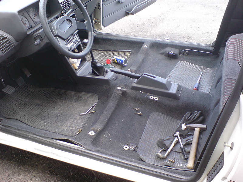Z racji, że ciągle pojawiała mi się wilgoć pod stopami kierowcy zacząłem rozbierać wnętrze.