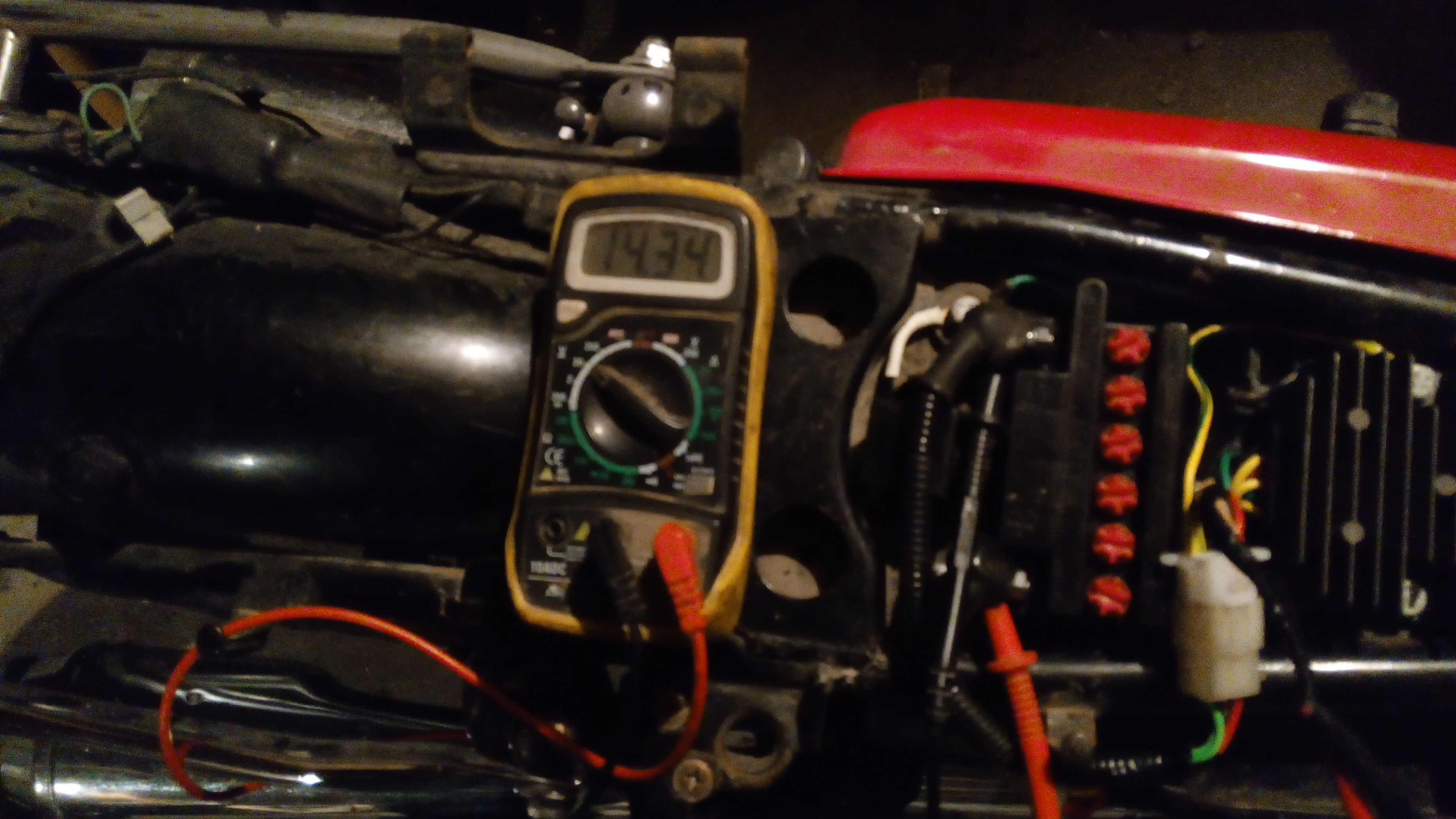 Z minusów to na pierwszym miejscu pojemność zastosowanego akumulatora skutecznie ograniczona dostępną przestrzenią. Pojemność 3aH i 25A to nie wiele więc mam nadzieje, że alternator nie zabiję go za szybko. Większe aku ledwo mieści się w rame pod siedzeniem, dodatkowo trzeba jeszcze by pociąć i wyklepać puszkę filtra powietrza.