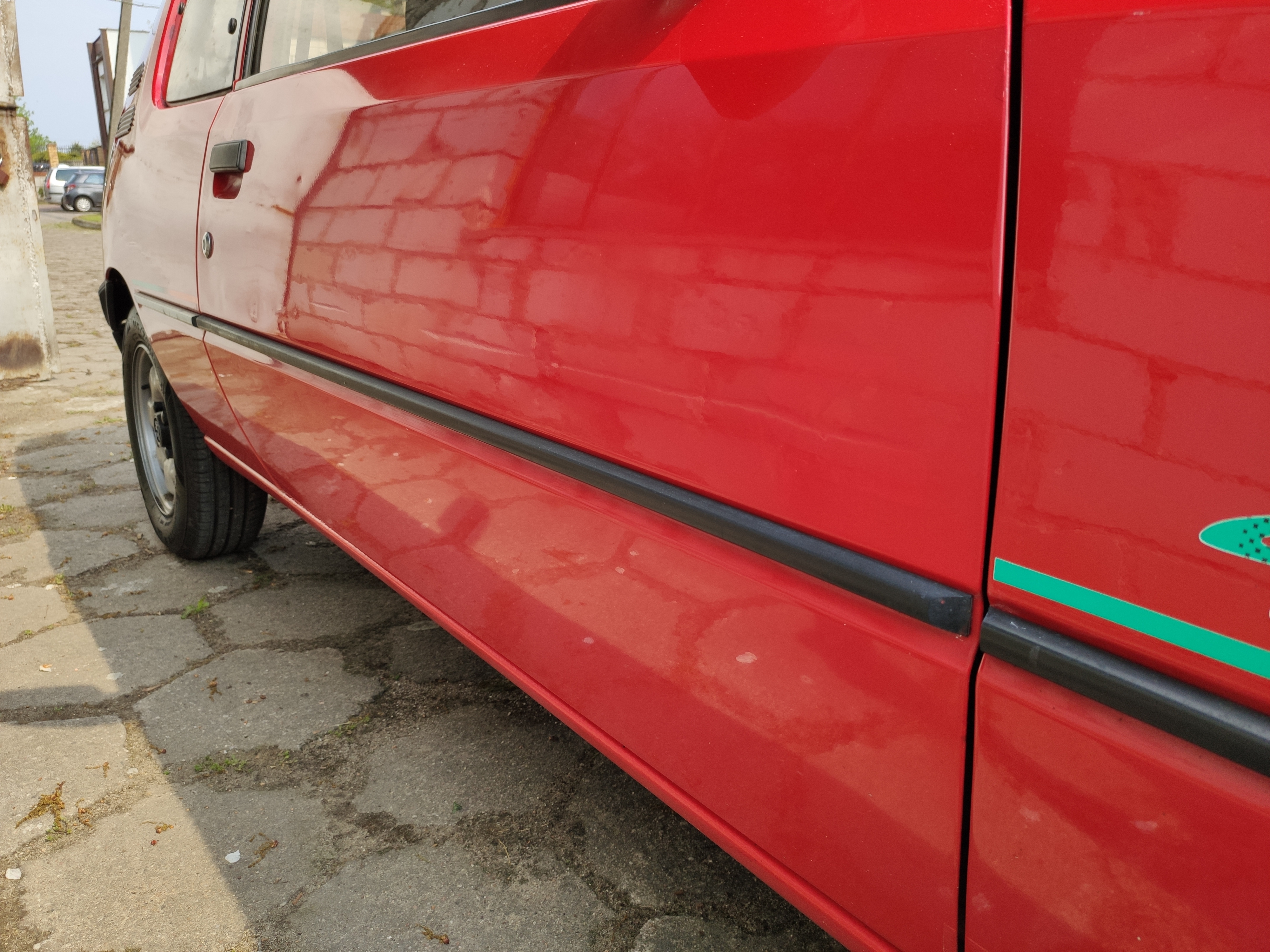 Puki co auto stoi w garażu, a ja poszukuję części. Niestety czeka mnie karkołomne zadanie. Znaleźć drzwi P3KB z naklejką Color Line lub drzwi w kolorze, a naklejki dorobić.