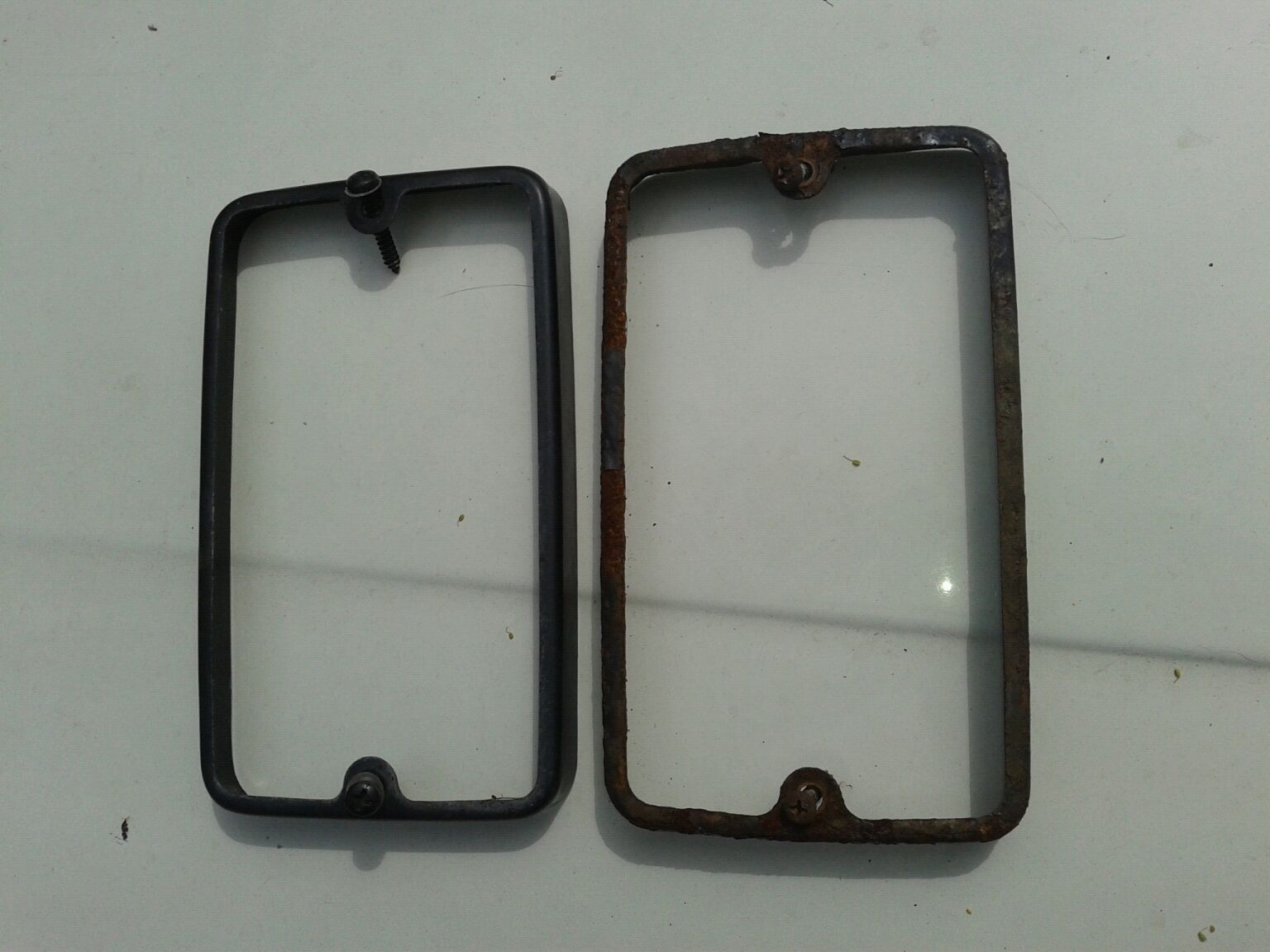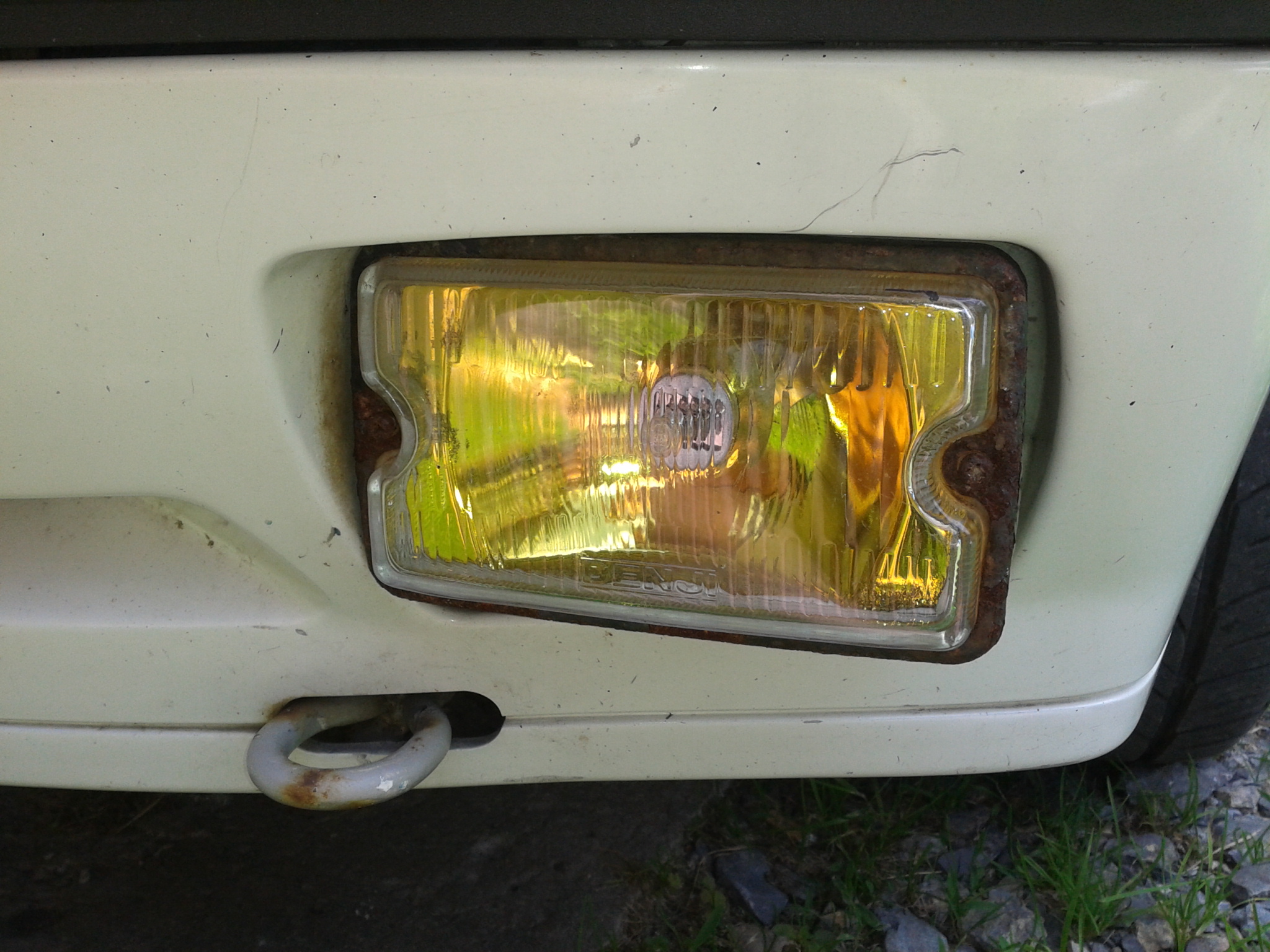 Po lewej ramka Siem pochodząca z GTI z 1986 roku, po prawej - zwłoki ramki z Tajwanu. Po odkręceniu dwóch śrubek, dostałem się do wnętrza halogenu i ku mojemu zdziwieniu okazało się, że plastikowe tyły zostały zmienione jeszcze przez Xonaxa. Tak wygląda halogen po wymianie ramki. Niestety korodować zaczęły już trochę odbłyśniki, ale póki co tak musi zostać. Także, jeśli ktoś ma u siebie halogeny Denji, niech jak najszybciej zabezpiecza ramki antykorozyjnie, bo potem może nie być co zbierać...