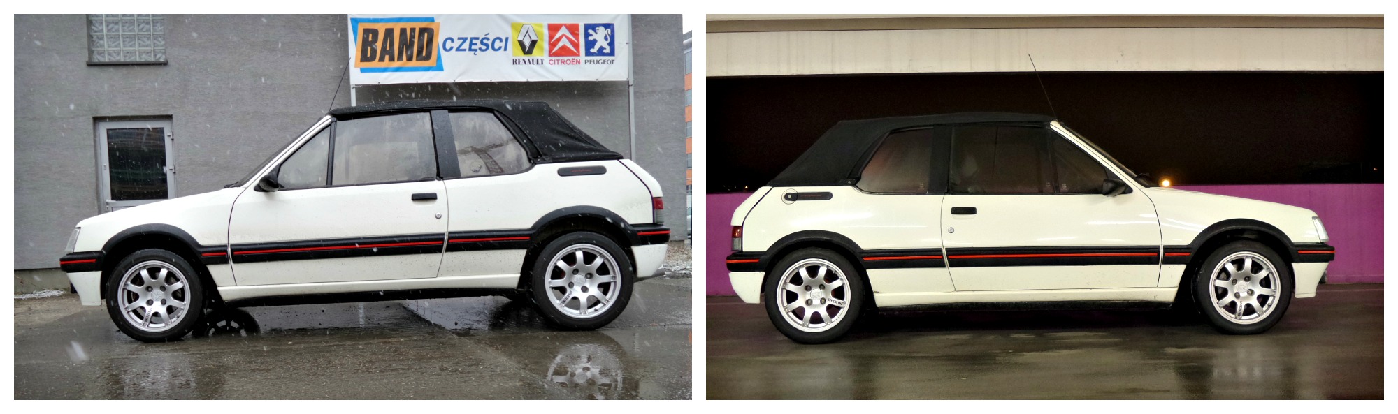 No i na koniec małe porównanie. Moim zdaniem wyszło bardzo fajnie. Jedynie przód poszedł w dół mniej, niż się spodziewaliśmy. Po sprawdzeniu certyfikatu TUV moich sprężyn okazało się, że obniżają one o -30 mm. Jak dorwę jakieś springi -40, to się wszystko wyrówna. Może ktoś chętny na taką zamianę?