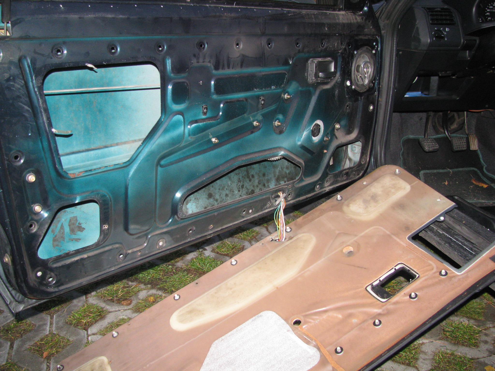 We wtorek 11 list. postanowiłem zadziałać z zamkami. Wkładka od kierowcy się posypała, postanowiłem je zamienić z tą od strony pasażera. Bardzo spodobały mi się drzwi od wewnątrz ;) - tutaj od pasażera (bynajmniej nie pieszego) ;)