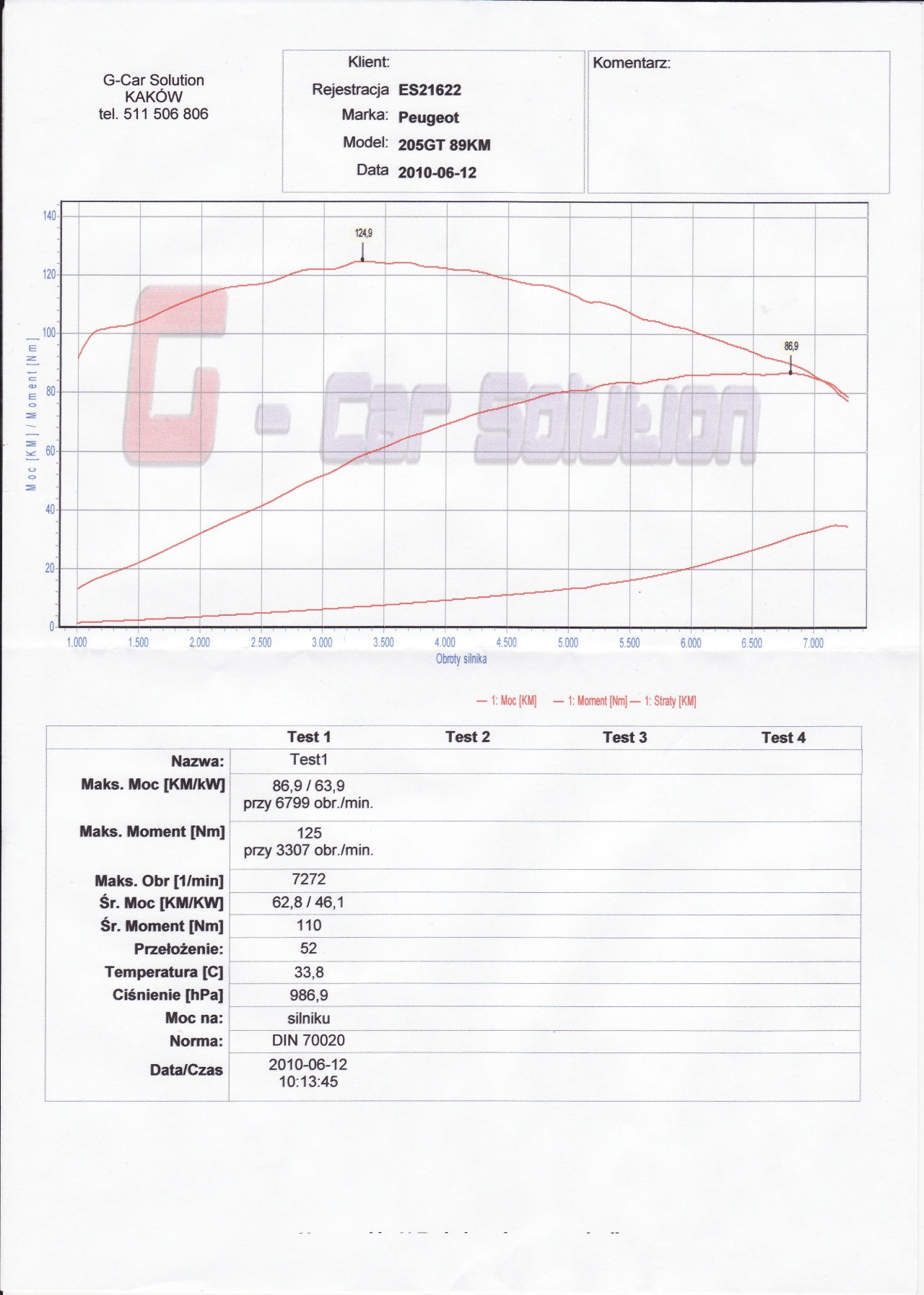 Wczorajszy pomiar GTka na Borkach. Silnik seria.
