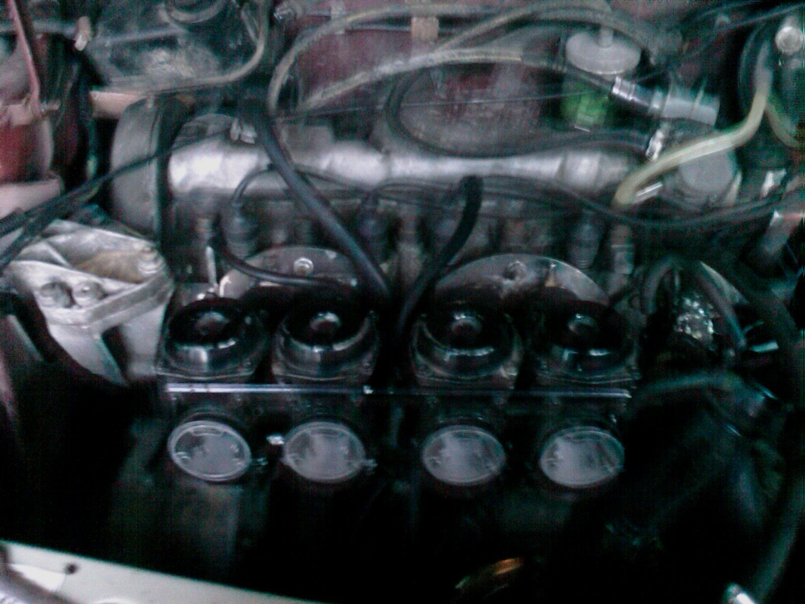 mianowicie gaźniki mają od spodu takie małe śrubki do spuszczania z nich paliwa i jedna po prostu w skrajnym prawym gaźniku cieknie