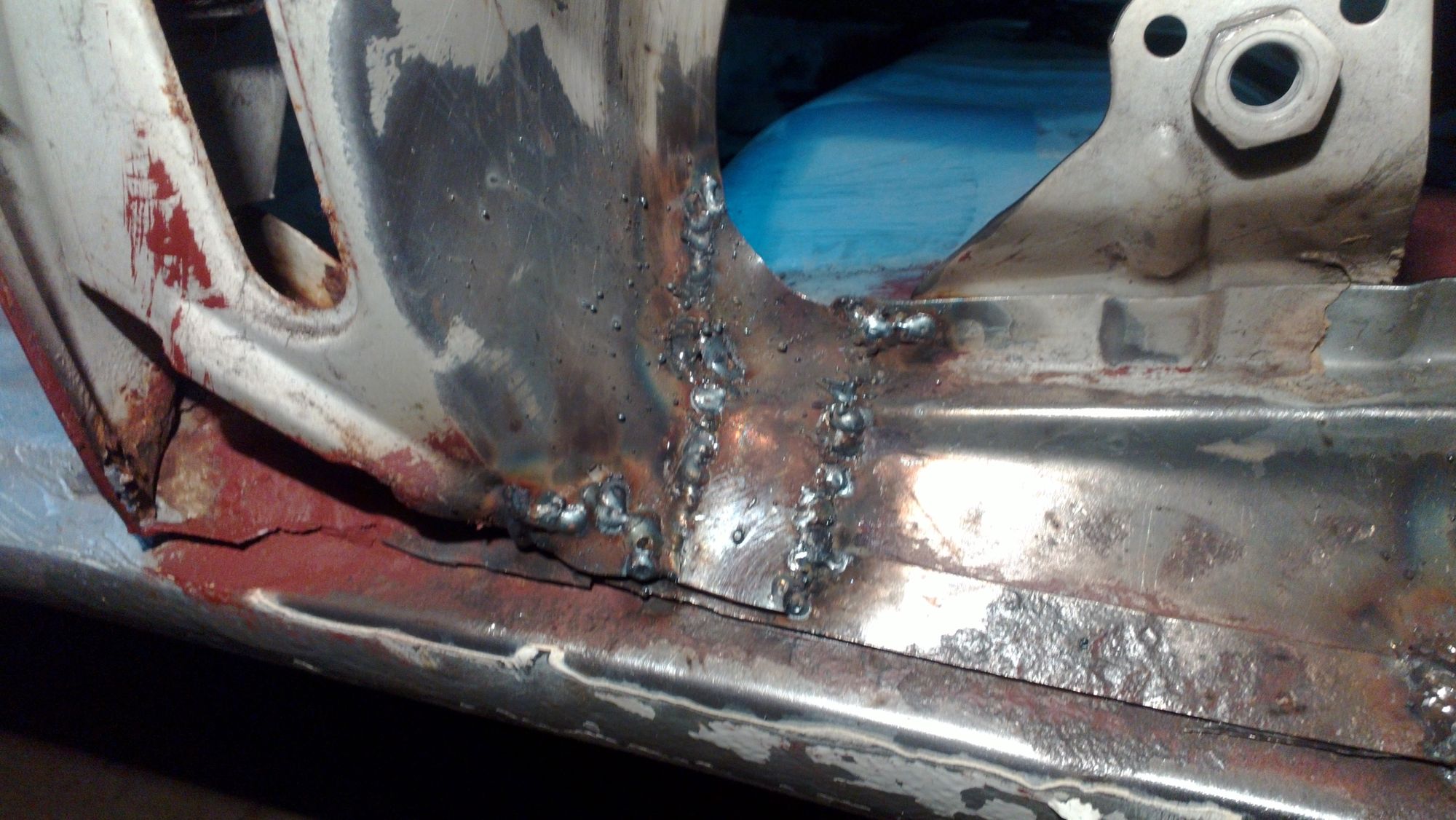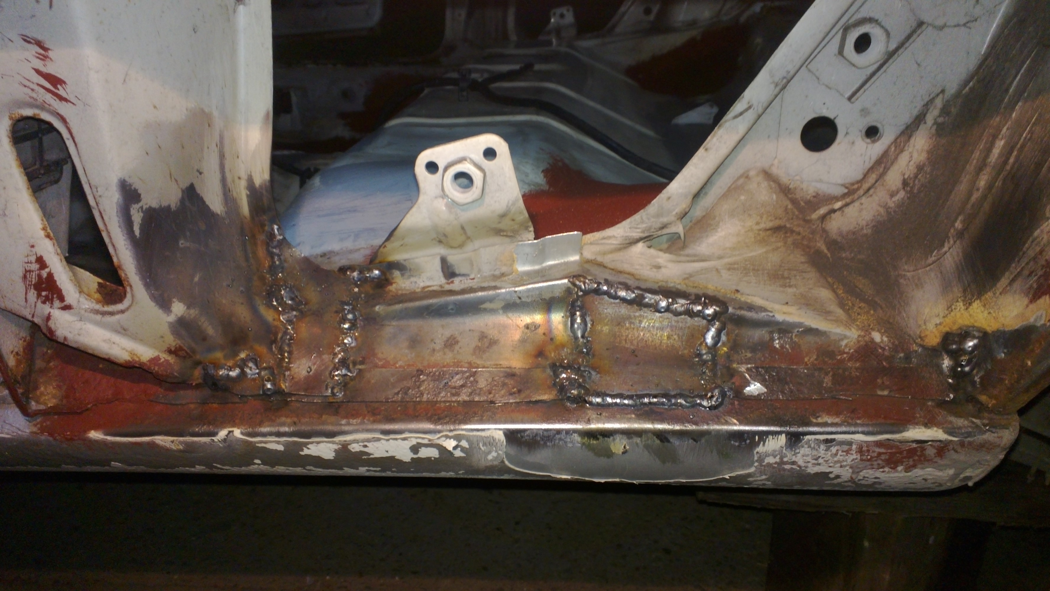 - zaspawałem też przyszłościowo, te otwory w podłodze, chyba ustalające do tłoczenia, ponieważ bałem się, że kiedyś może to gnić;