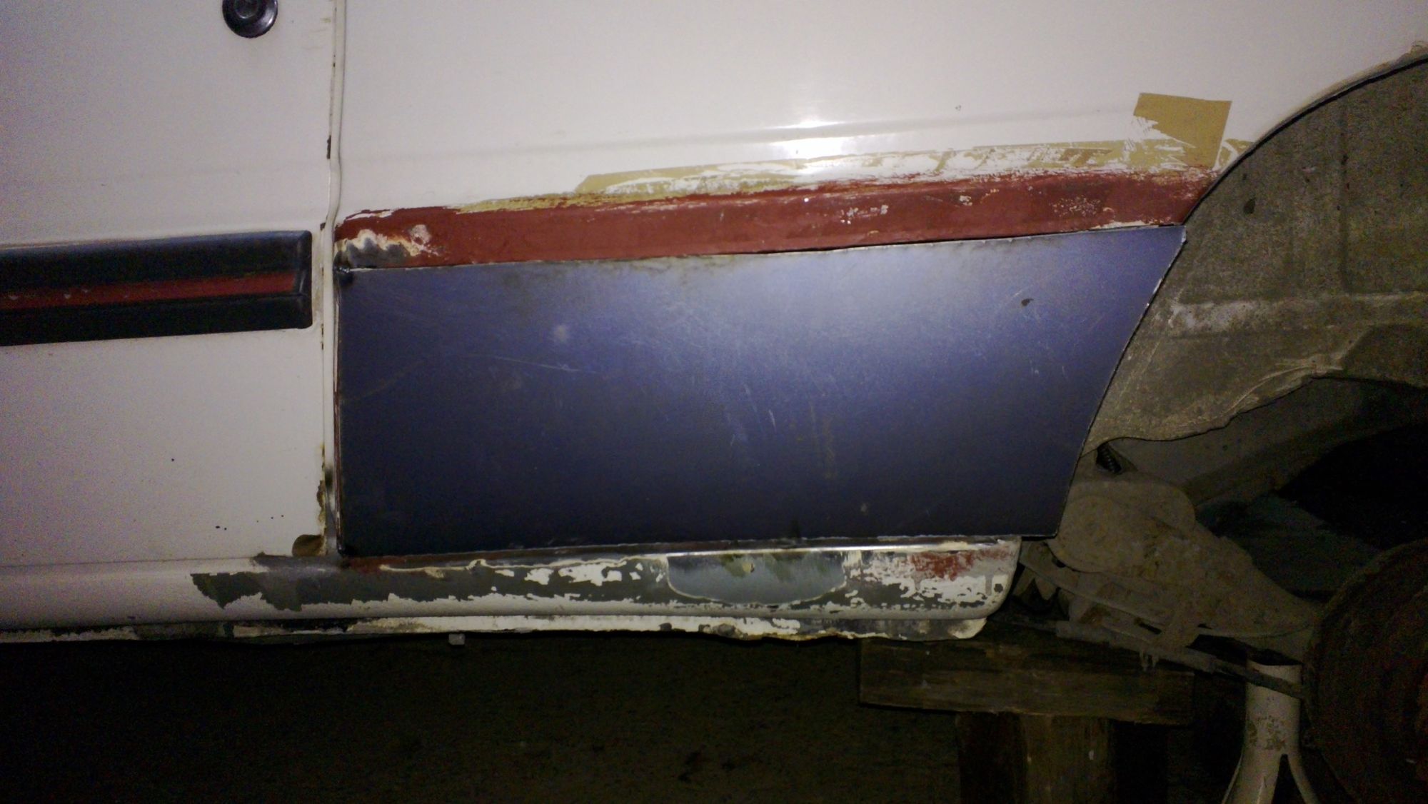 - wstawiony próg wewnętrzny, ale przy okazji okazało się, że trzeba go wstawić razem z tym rantem na podnośnik, więc to też zostało zrobione. Dużo zabawy, ale nawet w miare to wyszło;