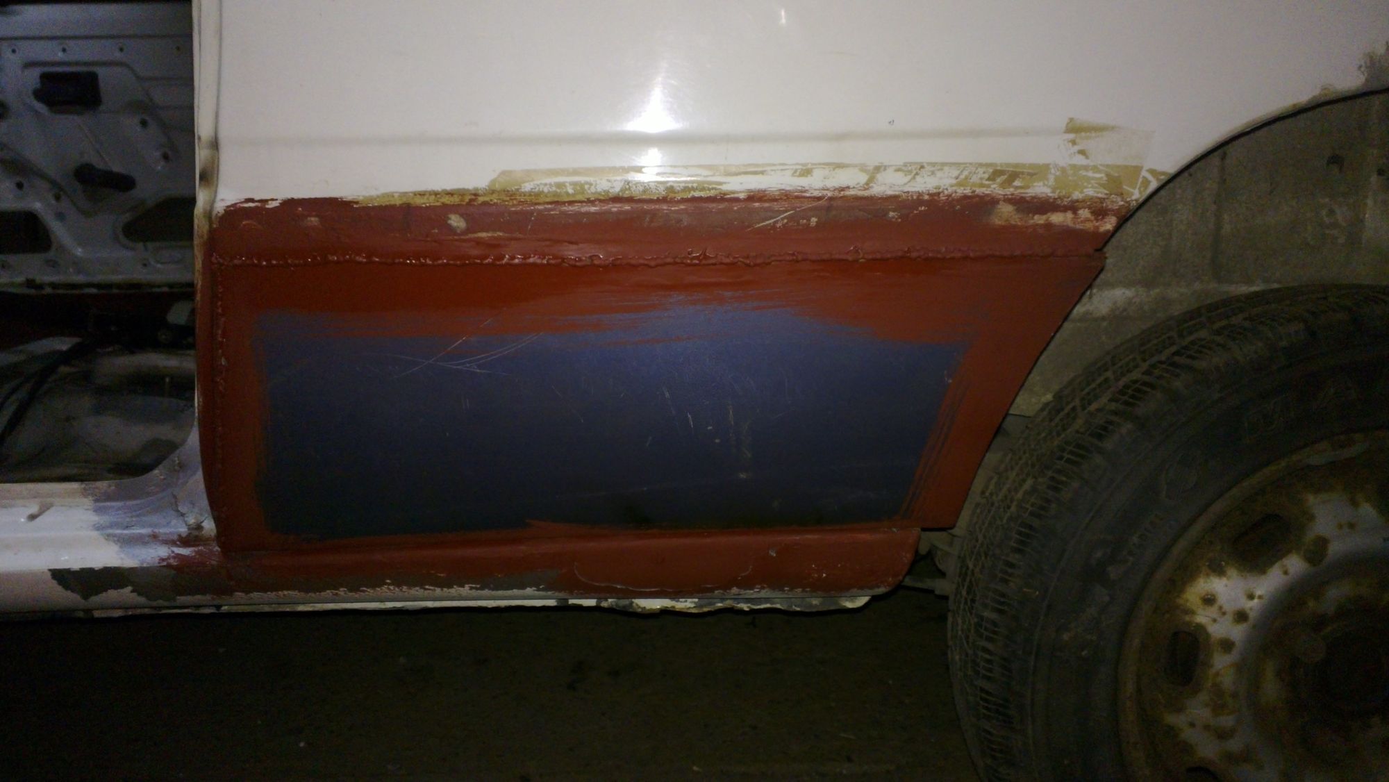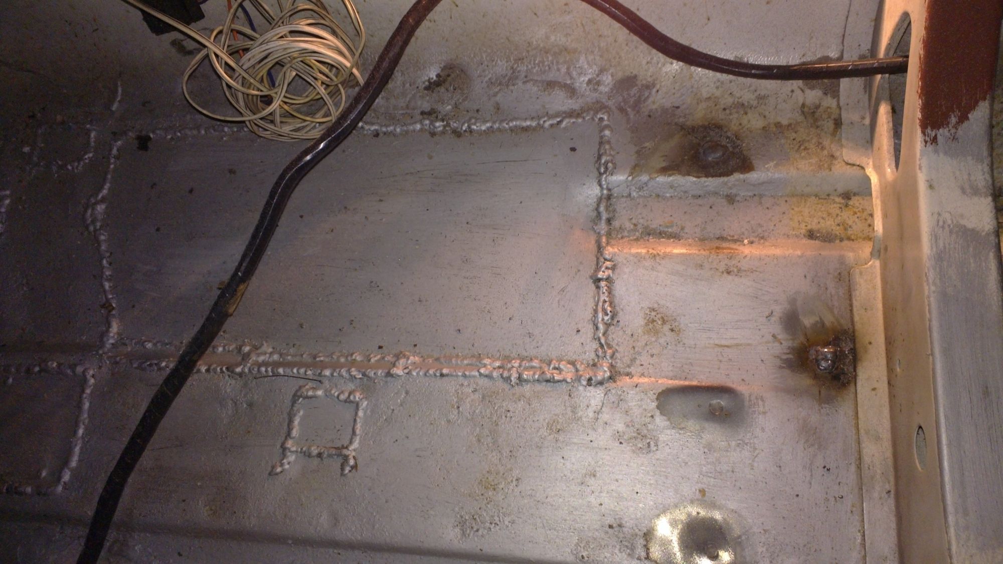-zaspawałem dziury, po przelotkach przewodów paliwowych i hamulcowych (zostaną puszczone w kabinie)