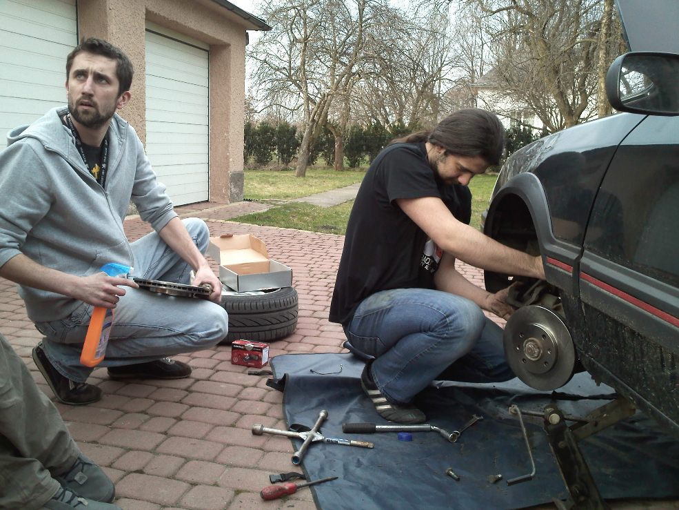 Zgadnijcie ile osób było potrzeba dzisiaj do wymiany tarcz i klocków u mnie w GTI