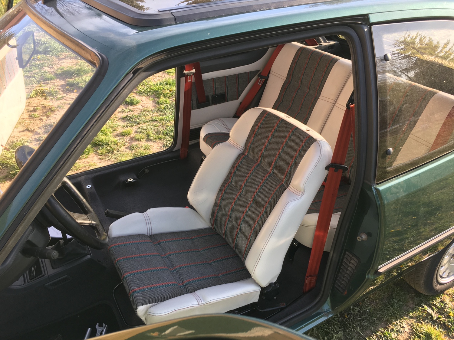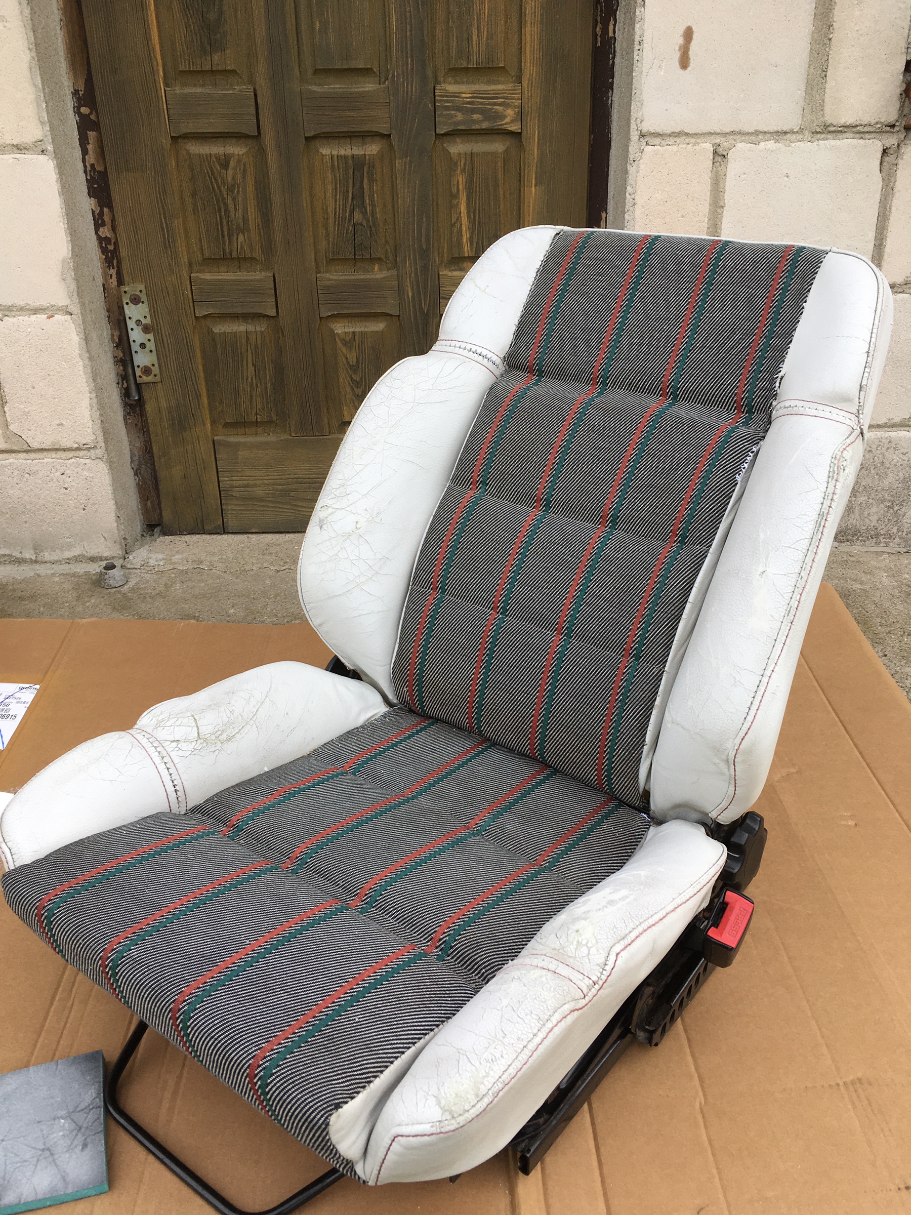 Fotele zostały pomalowane środkami od Colourlock: Plan był taki aby jak najmniejszymi kosztami przywrócić fotele do dobrej kondycji. Fotel pasażera był w dobrym stanie, fotel kierowcy w gorszym. Szukałem przez 3 miesiące czegoś w lepszym stanie, ale finalnie się poddałem i pozszywałem to co mam.
