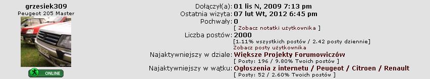 - Posiadany PUG: 205 Color line Dturbo, 307 XSI HDI, 407 SW 2.0 HDI