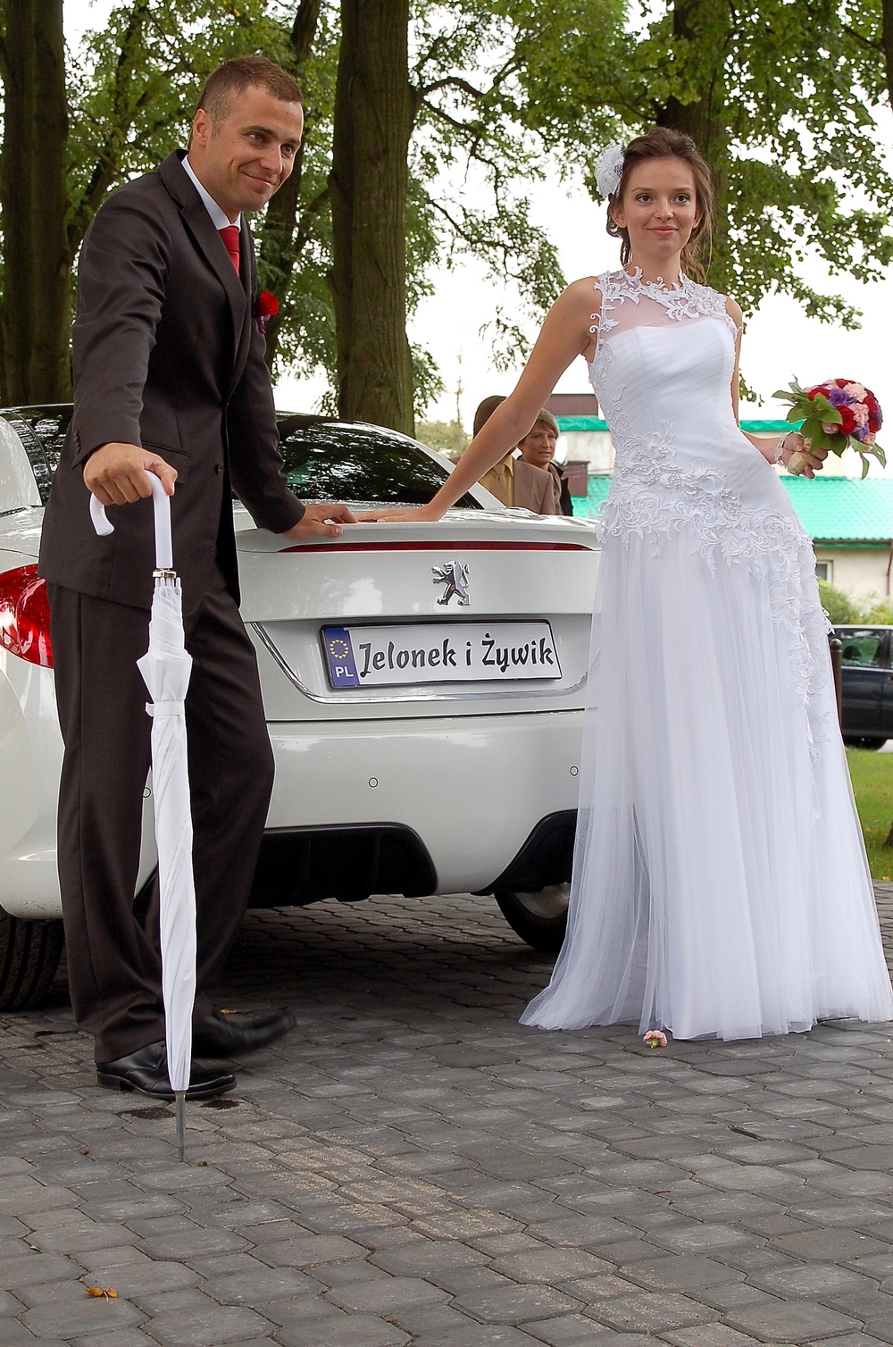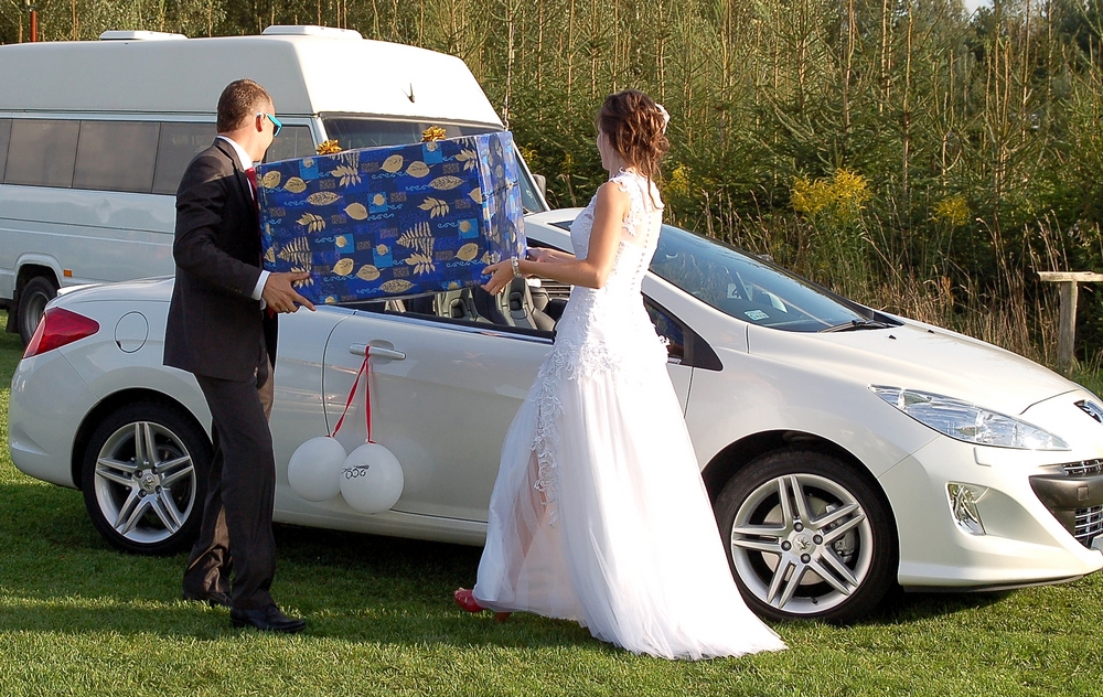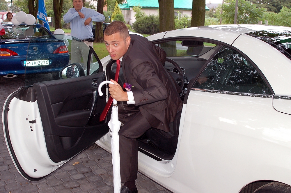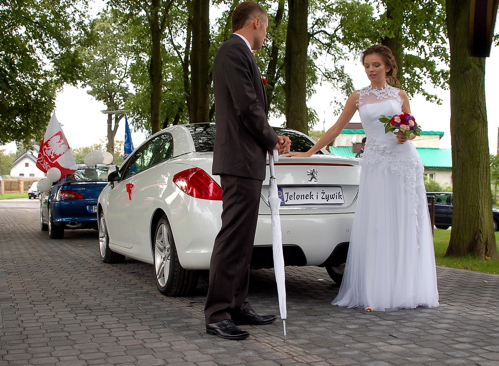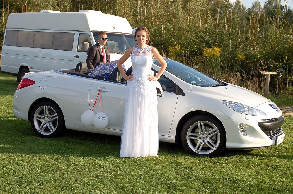 Prześlicznie wyglądali w 308 CC - szczególnie Ewcia w białej sukni za kierownicą białej CCtki