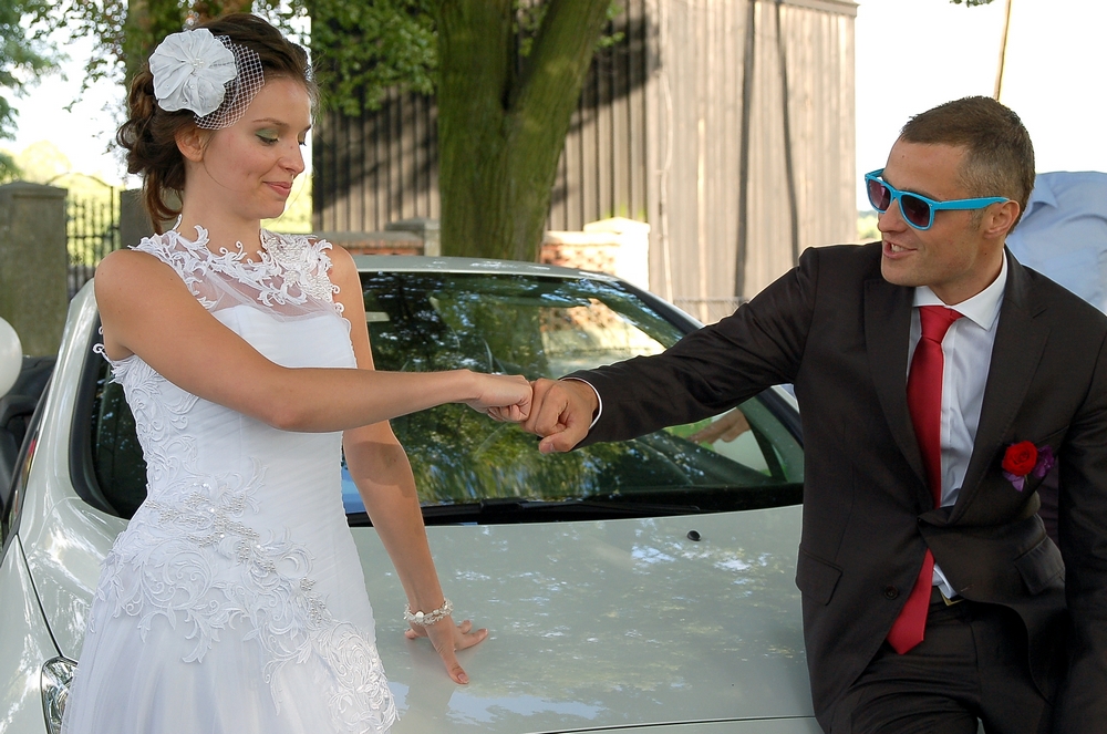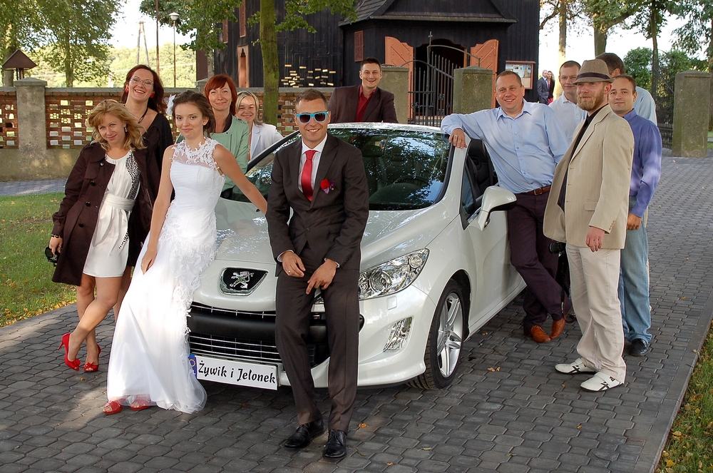 Maciek z Ewcią mieli śliczny ślub - niezbyt dużo gości, przecudny drewniany stary kościołek i niepowtarzalny klimat wszechobecnych Peugeotów - aż ksiądz w kazaniu o nas wspomniał