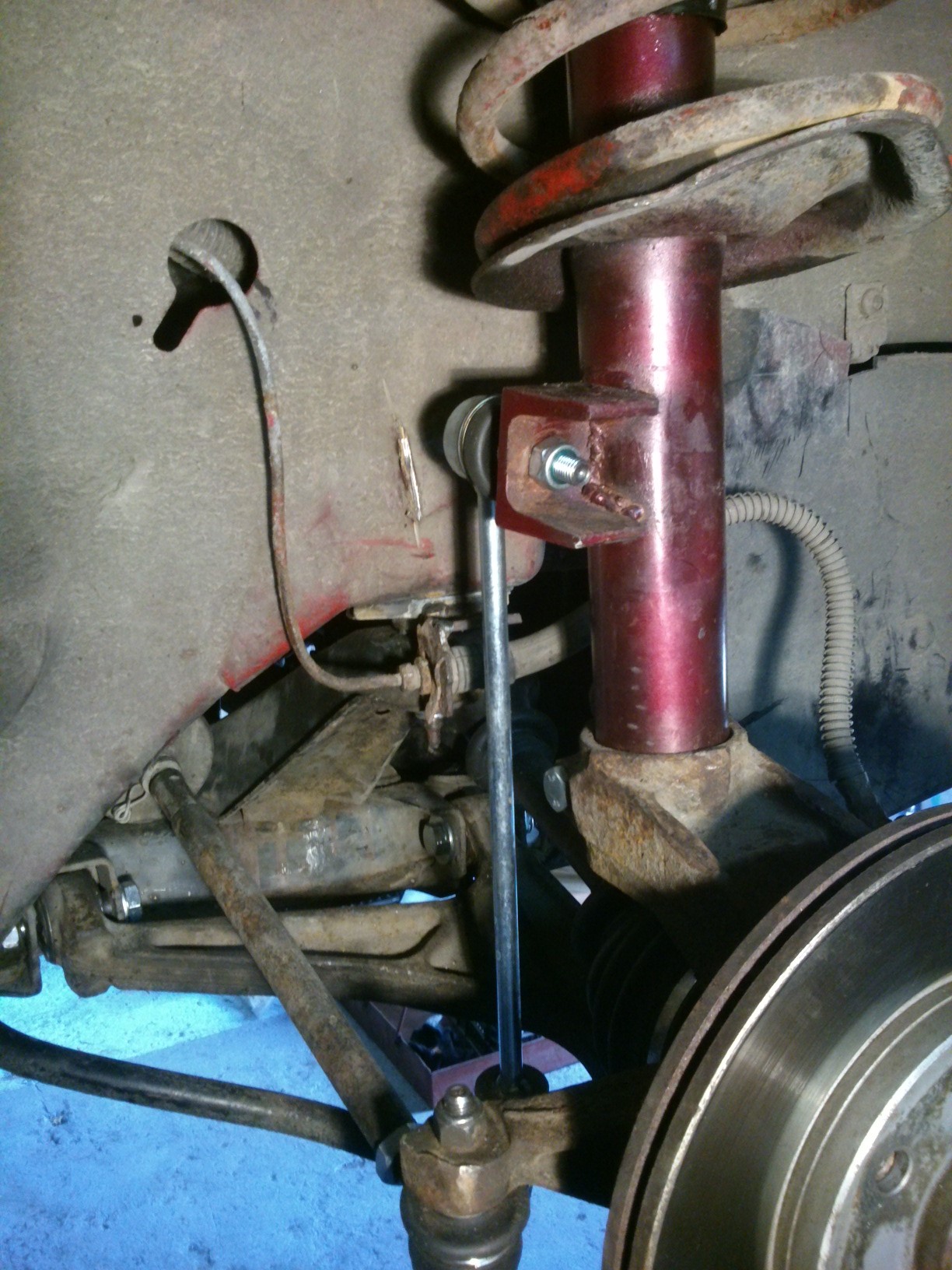 Amortyzatory trzeba wymienić na takie z mocowaniem łącznika stabilizatora, lub dorobić jakieś customowe mocowanie.