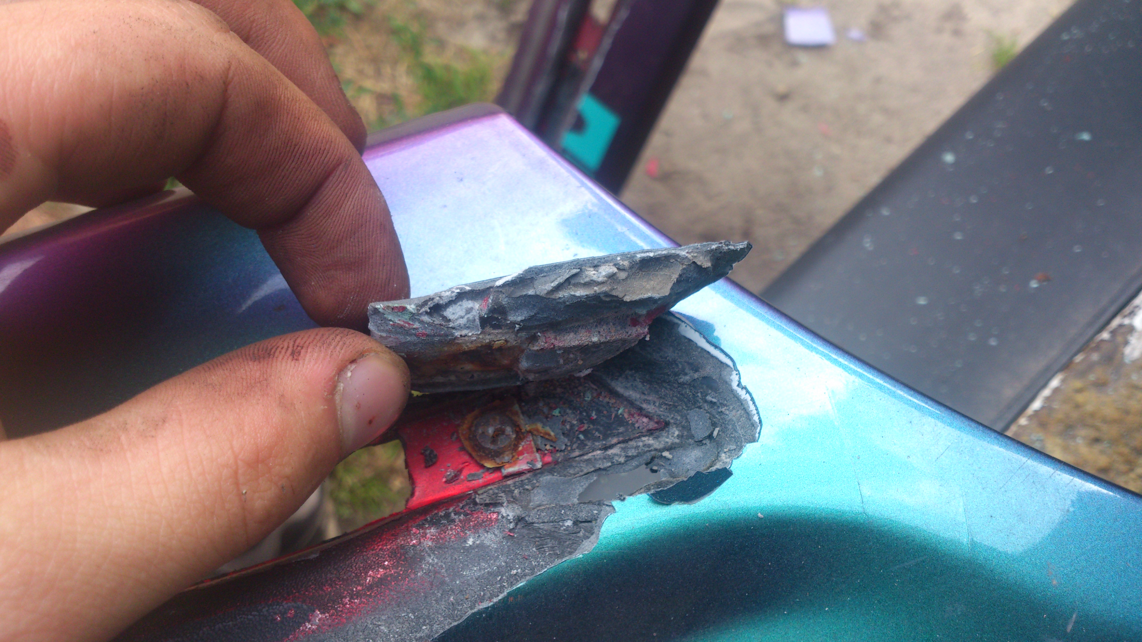 . i pomalował. teraz pytanie jak to usunąc szpachle kit zrzuciłem tylko nie wiem jak ten lakier zerwać aby nie podrapać poszerzeń czasami odchodzi pod paznokciem ale w większości trzyma się mocno