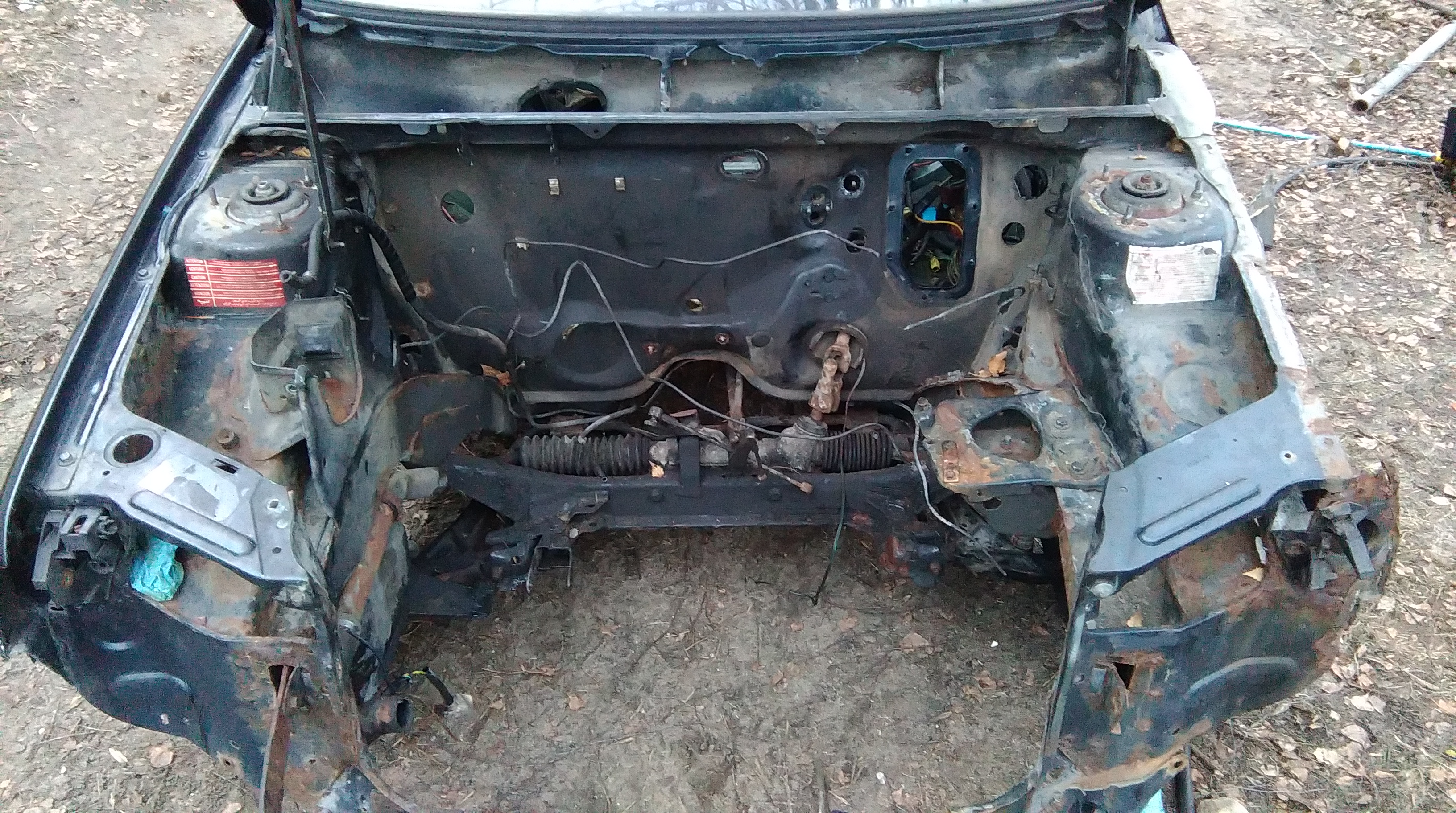 Update tematu. Dziś komora silnika jest już niemal pusta. Silnik stoi już grzecznie obok razem ze skrzynią i dwoma kartonami resztek. Za tydzień zabiera go blacharz i wtedy zacznie się rzeźba. Teraz czyszczenie wszystkiego jakimś dobrym detergentem.