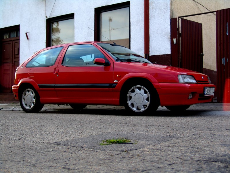 Cześć, mam wolną chwilkę więc postanowiłem pokazać Wam moje autko. Jest to Citroen ZX 2.0 16v z 1992 roku. Kupiłem dla chwili odpoczynku od modelu 205 ( chociaż długo nie wytrzymałem ;P ), miało być Renault 19 16v ph1, ale dwie sztuki które obejrzałem nie podobały mi się zbytnio jeśli chodziło o zależność STAN / CENA. Kiedy wyczerpałem wszystkie opcje wpadła mi w oko ta cytrynka.Telefon do właściciela, szybkie negocjacje przez telefon, dwie godziny później i nieco ponad sto km dalej trafiłem po auto które już po drodze wiedziałem że kupię;) Powitanie, oględziny, przejażdżka, negocjacje... Biorę! Całą drogę wracałem z bananem na ryju, dynamika jak należy, w zakrętach świetnie się prowadzi zachęcając do mocniejszego wciskania gazu. Po zamknięciu szybek w kabinie super cicho ( może dlatego że moje poprzednie auto to 205 gti z przelotem i z samą blachą w kabinie ), można skupić się na prowadzeniu
