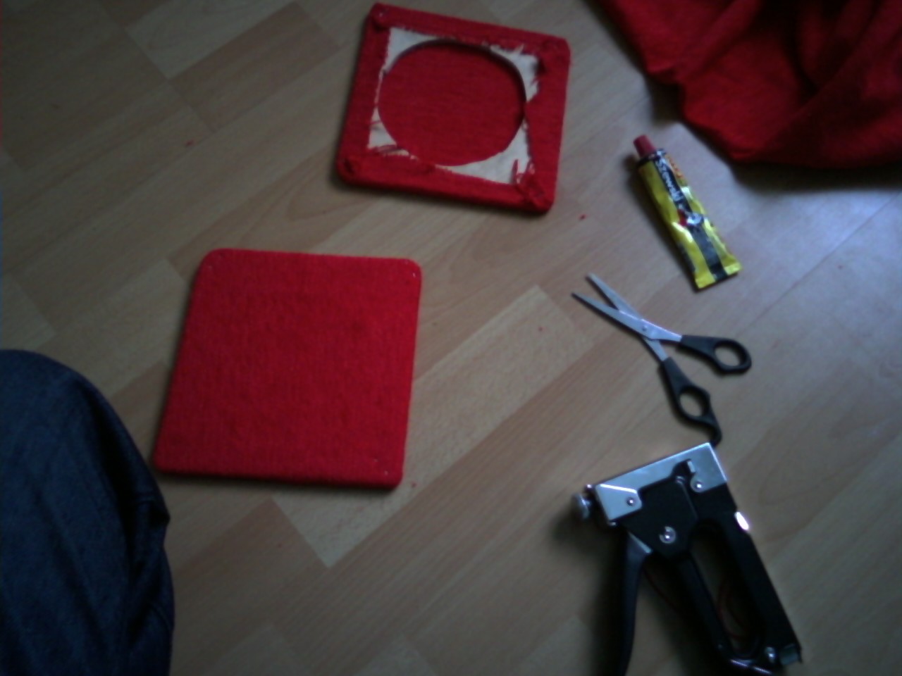 podłoże zostało wykonane z czerwonego materiału i kawałka płyty zwanej sklejka 5-6 mm.