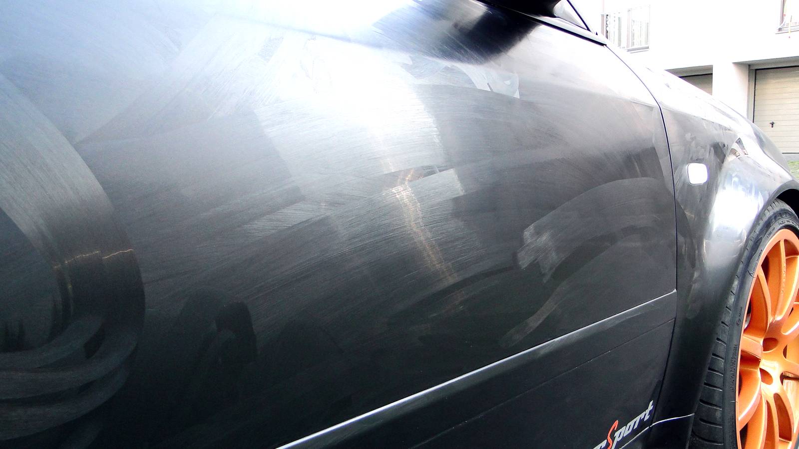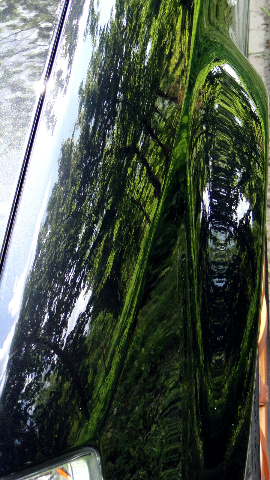Wosk niesamowicie twardy, jak sie nalozy za duzo bardzo ciezko go zetrzec, jest oczywiscie roznica miedzy woskami jakich uzywam, po starciu lakier jest zupelnie inny w dotyku, dlon nie slizga sie a idzie z wyczuwalnym oporem, mimo iz powierzchnia jest bardzo gladka. Po wystawieniu na slonce widac wyraznie, ze wosk "w trakcie procesu" wyglada dosc podobnie jak starty niedoschniety wosk. Po wygrzaniu i wypolerowaniu mikrofibra - uzywalem scierek sonaxa - szczerze polecam - REWELACYJNE mikrofibry, bardzo miekkie, lakier jest niesamowicie sliski, wydaje sie wrecz odpychac wode i odbicia sa swietne. Niestety zdjecia nie sesyjne i na dodatek w trakcie trasy po przelocie 200km polski wschodniej wiec lekko skurzony - tak to wyglada: