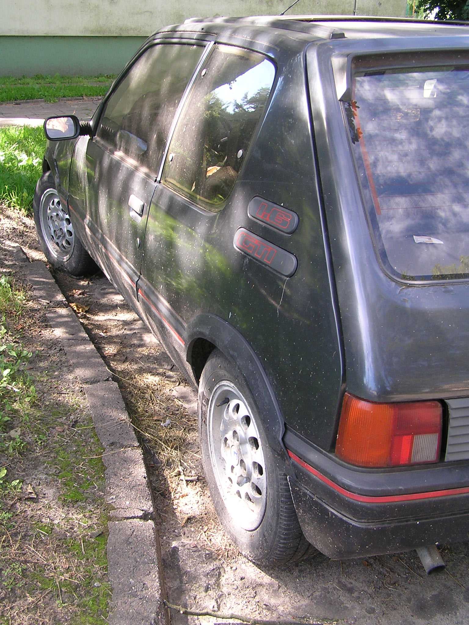 już jakiś czas temu(przed zimą) znalazłem Peugeota 205 Gti 1.6 podejrzewam że jest to wersja przed liftem(pomarańczowe kierunki, wnętrze),