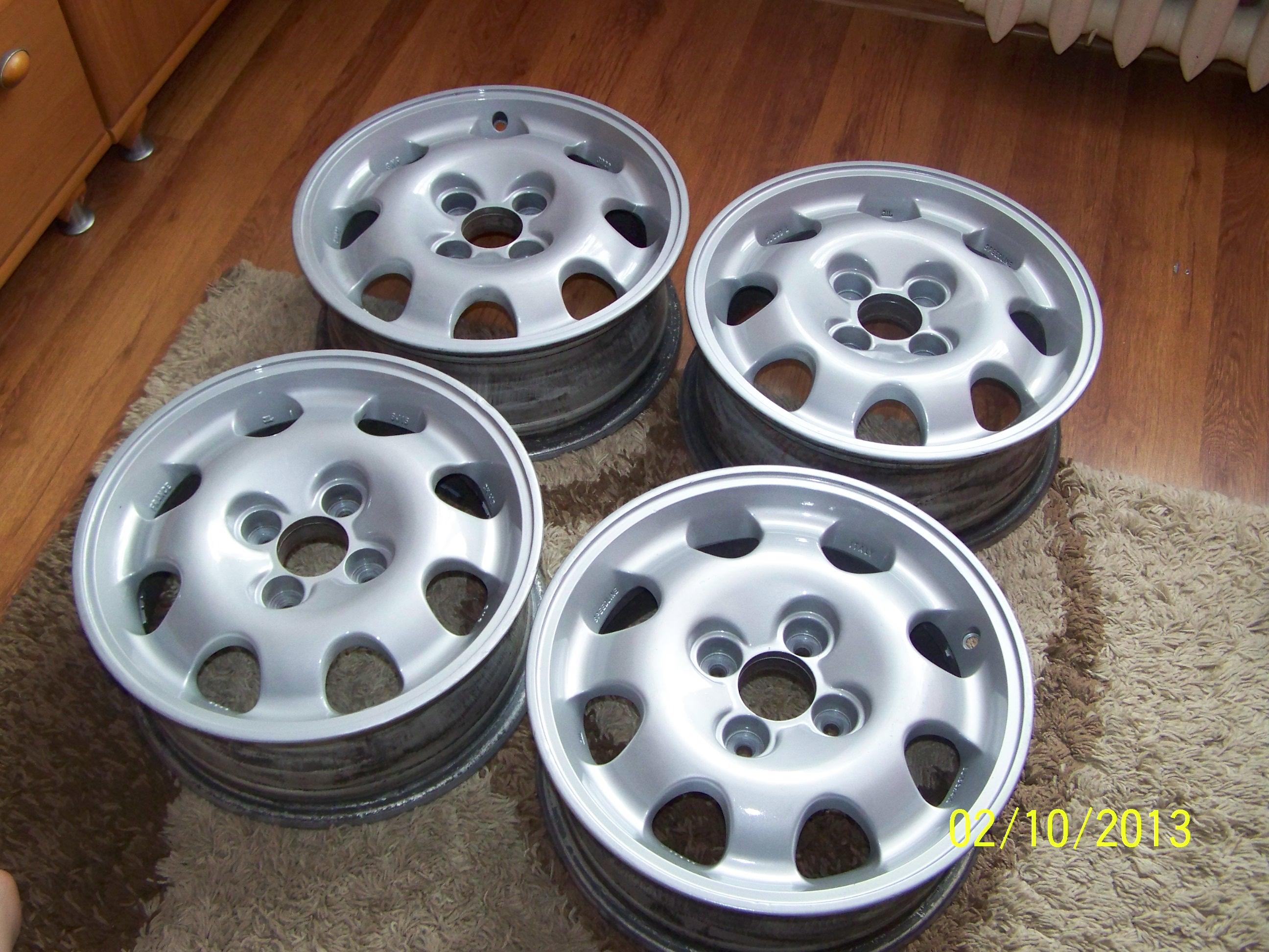 Prace nad autem ruszyły zderzaki zdjęte i lakierowane, od razu po szkole poszedłem do garażu lakierować dokładki no i przyszły mi alufelgi kolor już kupiłem i ruszyłem pełną parą nad nimi bardzo porysowane te alufelgi mi przyszły ale nadal są ładne