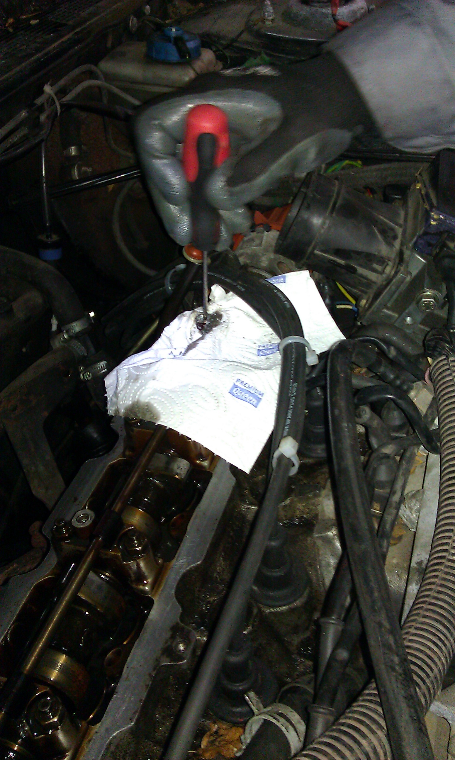 W wielka sobote przyszedl czas na gwintowanie pokrywa trzyma, nie cieknie, ale wciaz problem z cisnieniem oleju...najprawdopodobniej bierze plyn chlodzacy bo olej u gory ,metny'. Sprawa z elektryka nie dokonca rozwiazana...zle popodpinane czujniki, ale oprocz tego dmuchawa robi zwarcie.