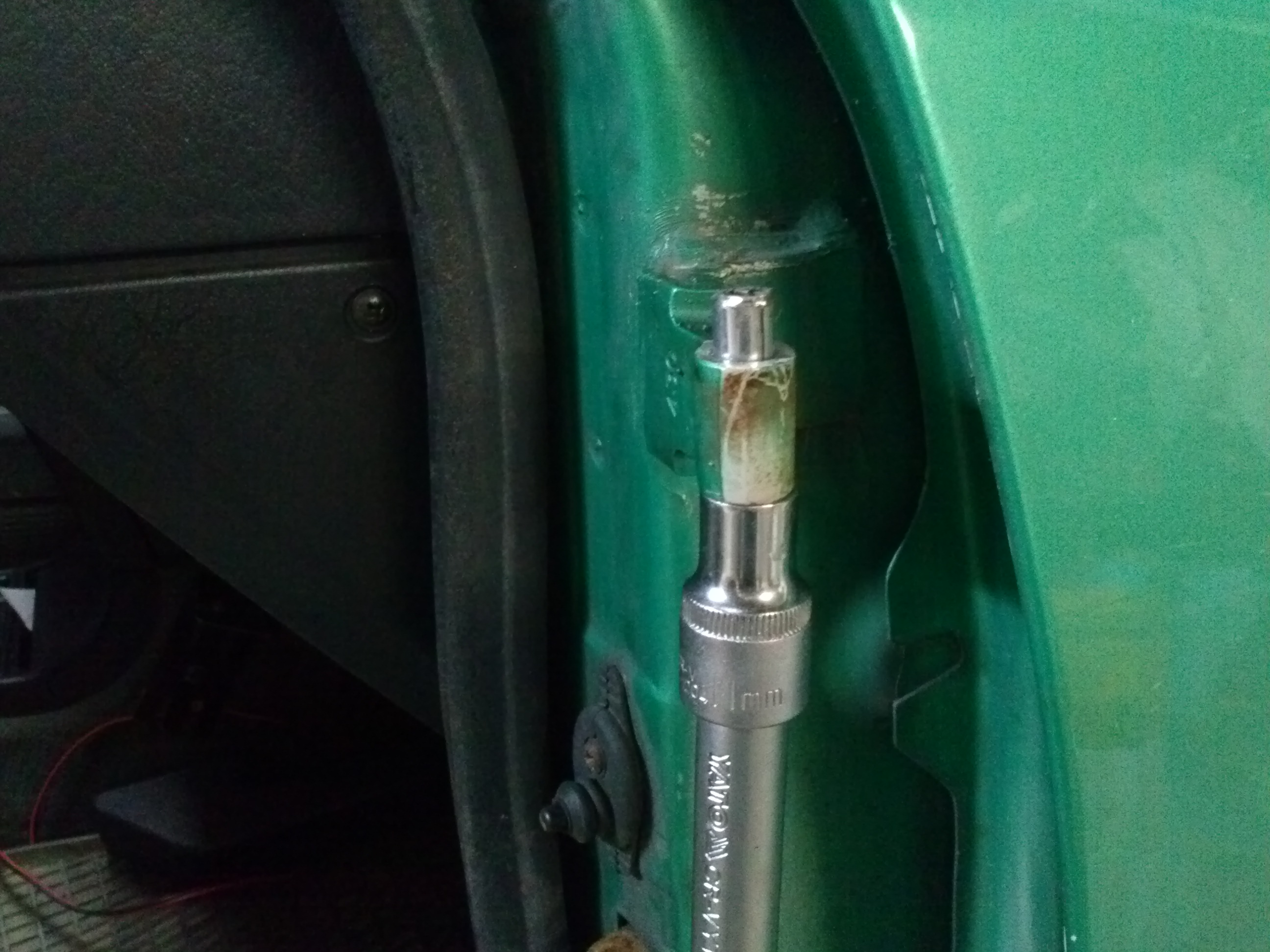 Materiał który posłużył za nową tulejkę Specjalny przyrząd zapobiegający wyrwaniu zawiasów ze słupka Wspomniane na początku podświetlenie