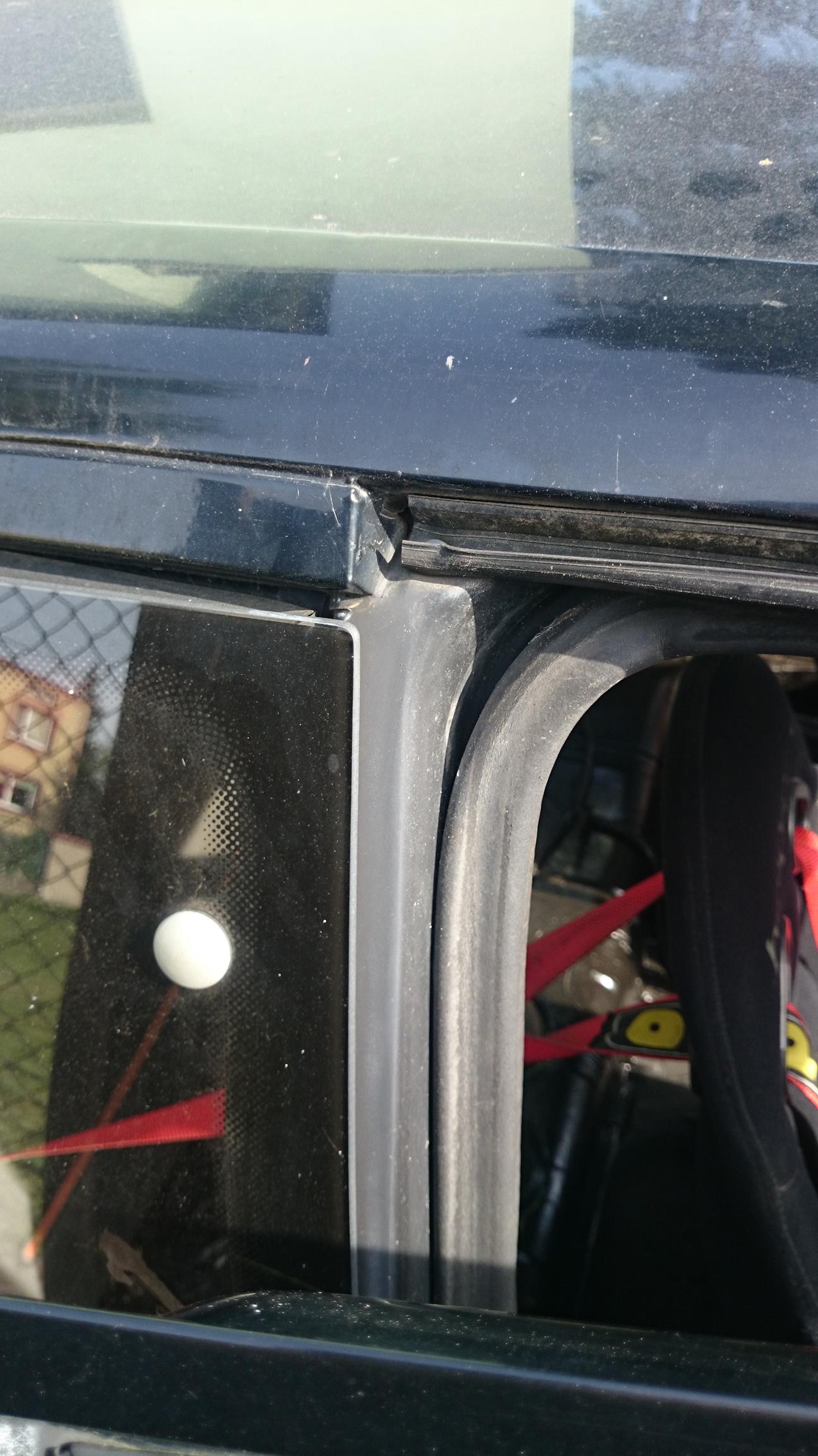 buda pomimo latania w kjs wygląda na sztywną jeszcze - zdjęcia dołu i góry słupków B nie pokazują większego luzu ani na górze ani na dole, nawet ten sealer w rowku jakiś taki niepopękany.