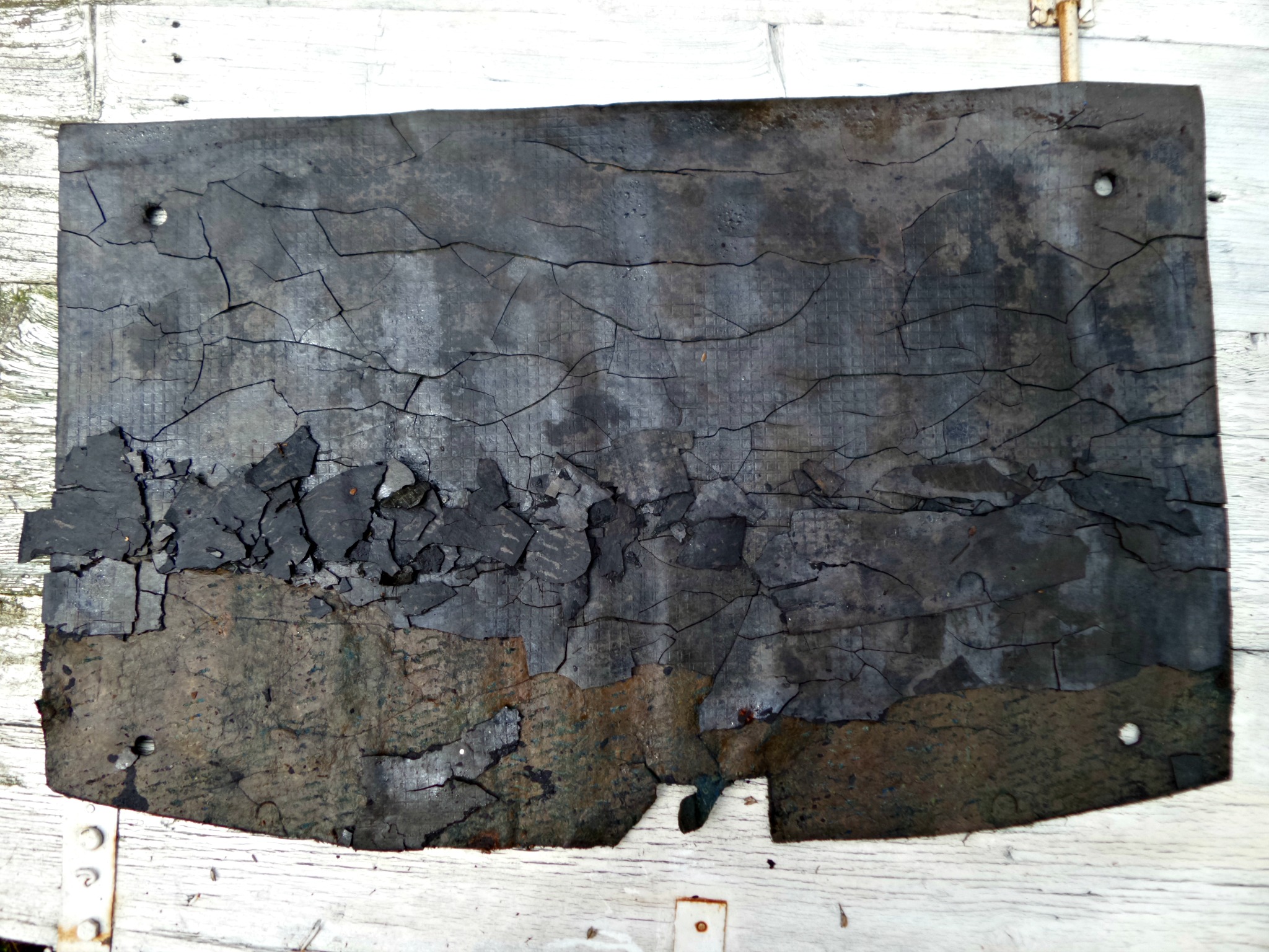 I faktycznie - maty były nasiąknięte. Ale wyglądało to tak, jakby w aucie skropliła się wilgoć, bo nie zauważyłem śladów przedostawania się wody z zewnątrz. Widocznie nagła zmiana klimatu i rozmrażanie na pokładzie TIRa nie wyszły mu na dobre. Na szczęście po wyjęciu wygłuszeń, podłoga okazała się nie tyle zdrowa, co praktycznie nieskazitelna. Nie zauważyłem nawet kropeczki rdzy, czy nalotu. Im lepiej poznaję to auto, tym bardziej mnie zadziwia. Aha - zanim zabrałem się za robotę, wpadł Druan na pępkówkę. Zamiast flaszki, zostawił mi w bagażniku jakieś zawiniątko. Jeszcze nie rozpakowałem, ale wygląda obiecująco
