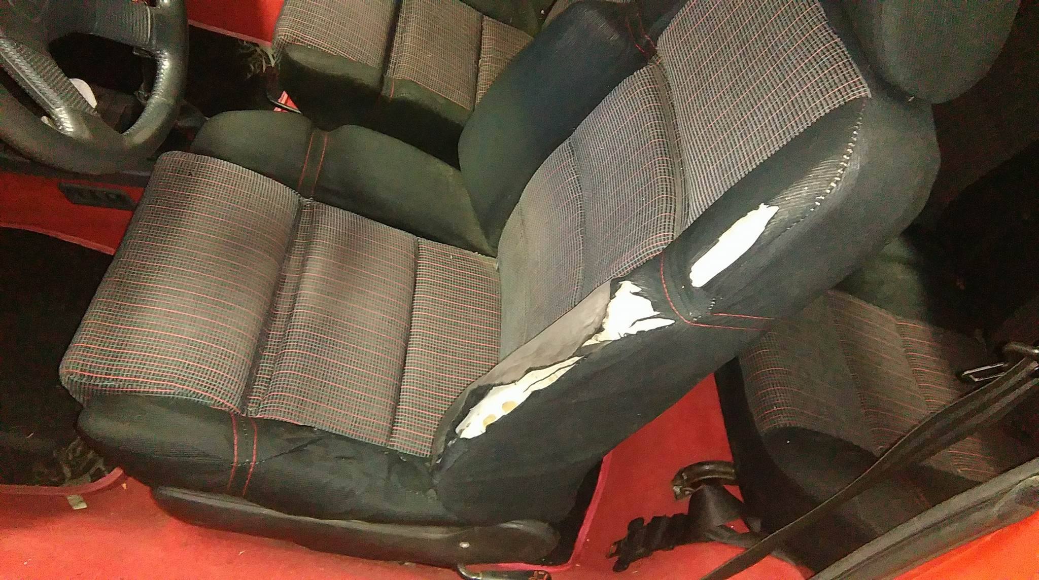 • Podarty fotel kierowcy (założę pokrowiec dopóki nie znajdę nowego fotela z tym samym wzorem)