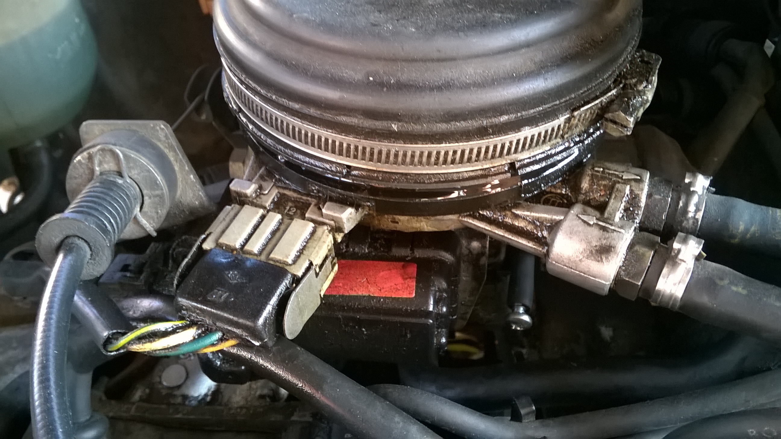 Ta wtyczka to od czujnika położenia wału. Jako, że masz system Bosha, to jej jedynym "zajęciem" jest to, że ludzie się o nią pytają Teoretycznie jest to złącze "diagnostyczne" do ustawiania zapłonu. Co do "pocenia się, to kwestia uszczelki pod pokrywą - jest tam duży oring, który najczęściej się "wyciąga" od czasu. Pomoże nowy + porządne skręcenie.