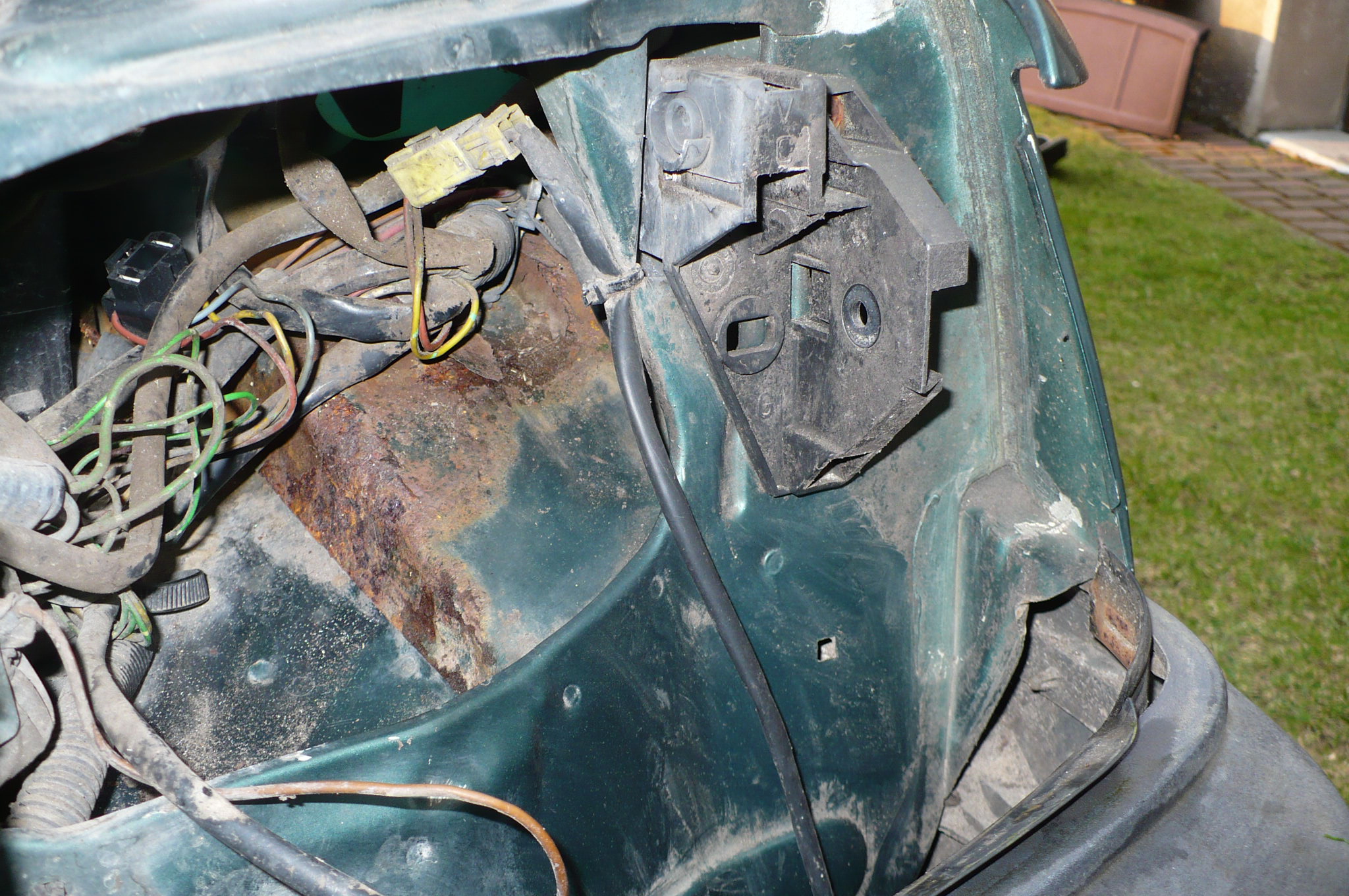 Prace rozpoznawcze trwają. Prawy okular w porządku, lewy posiada w dwóch miejscach ogniska rdzy- krawędź podłużnicy i dziurę w nadkolu. Po rozebraniu boczków widok pozytywny. Nie wiem tylko czy te otwory powinny być przelotowe czy zatkane masą uszczelniającą?